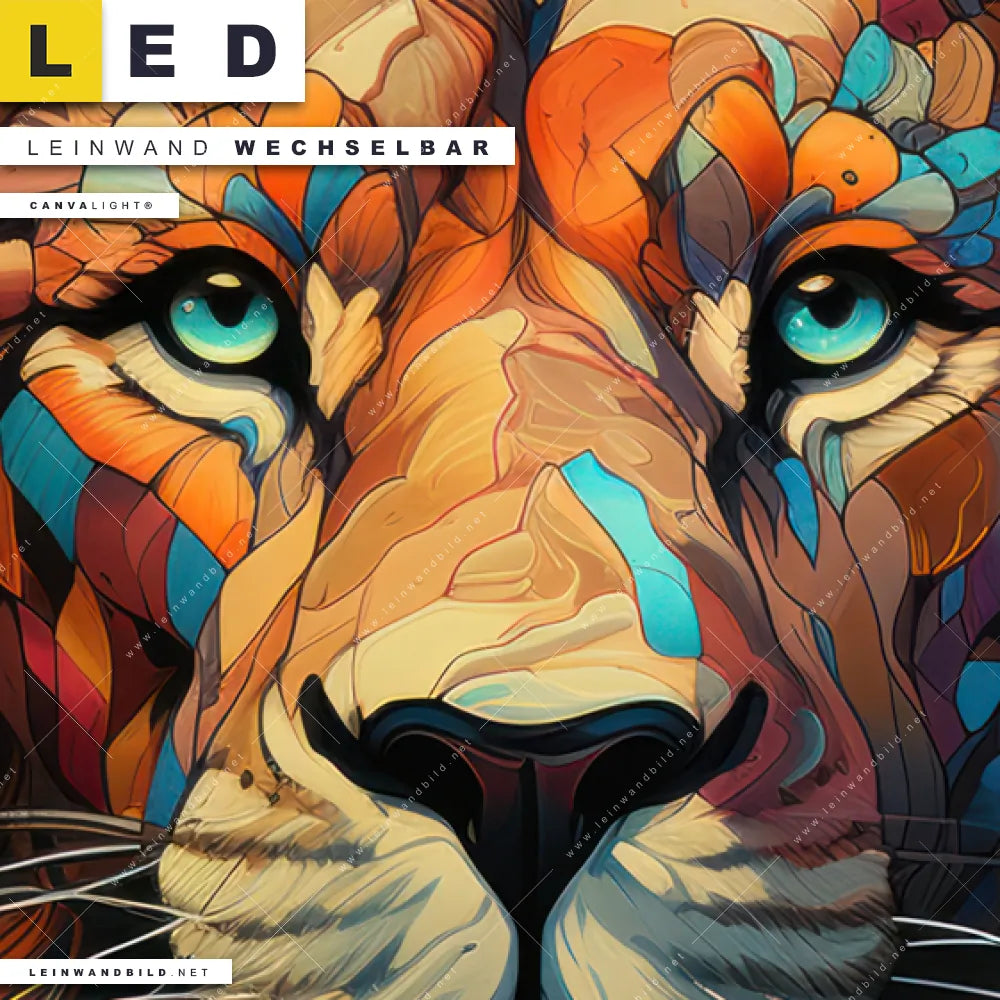 Bitte beachte, dass die Farben, der auf dem Monitor abgebildeten Löwe in Pop-Kunst Darstellung, möglicherweise von den Originalfarben deines LED Leinwandbildes abweichen können.