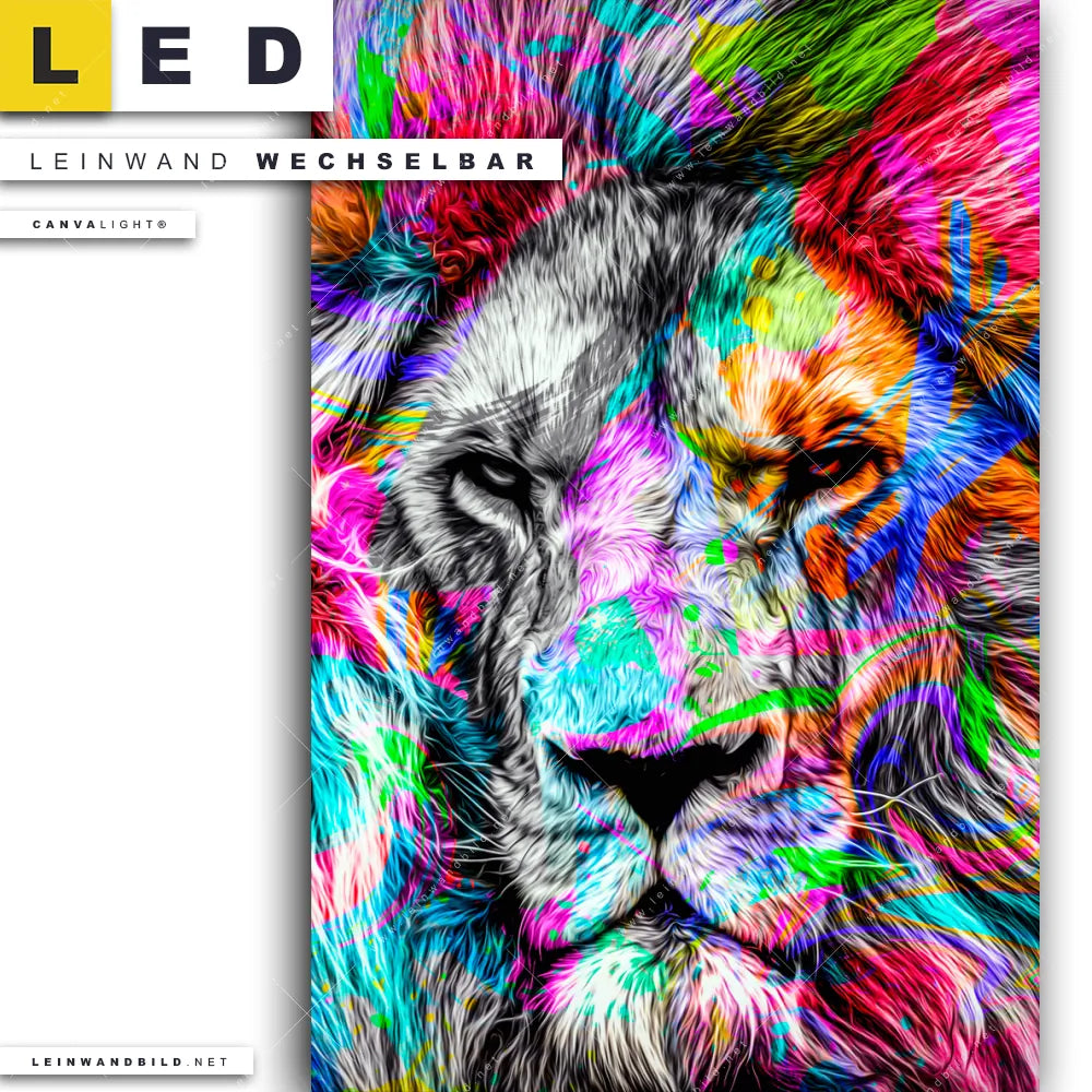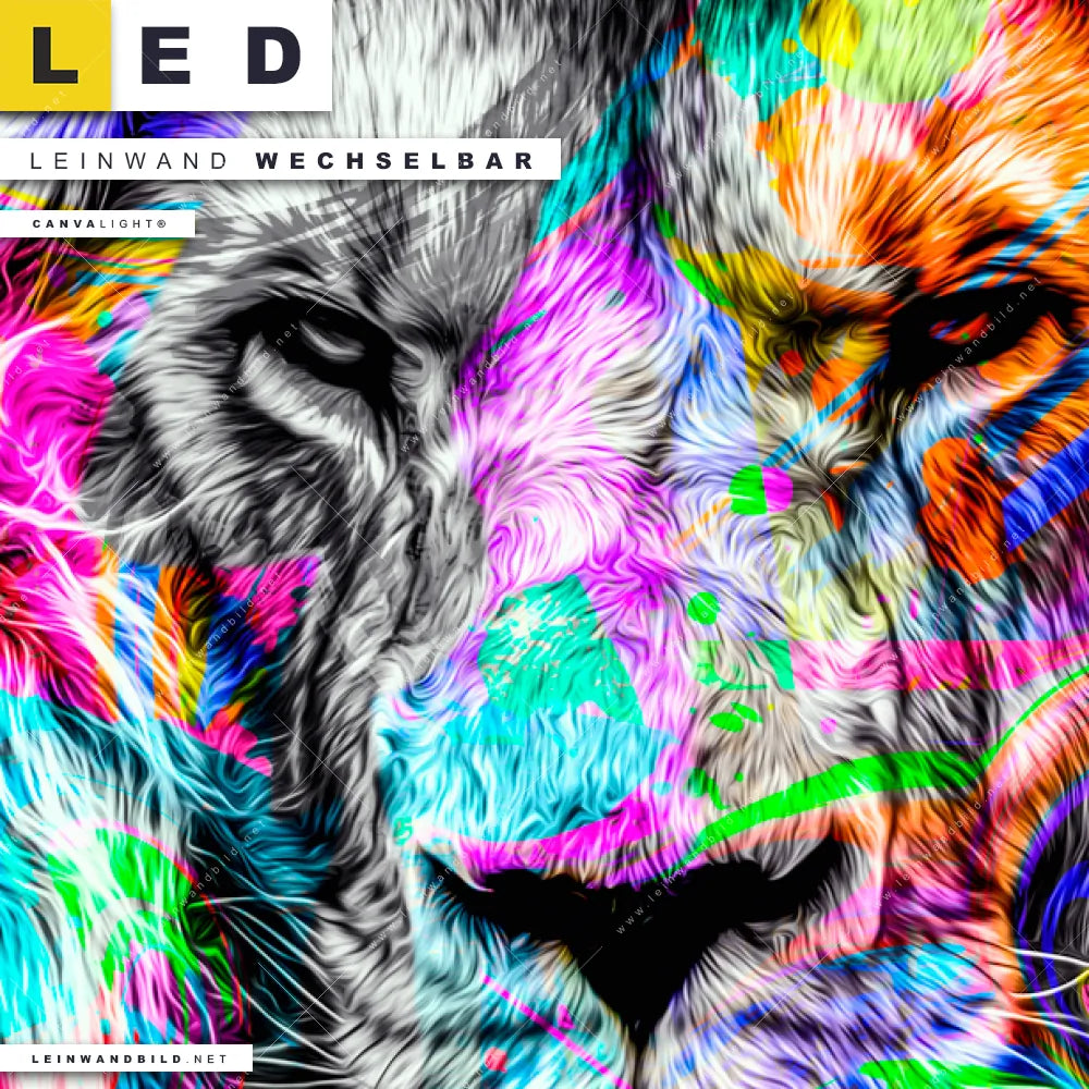 Du bist auf der Suche nach einem Tierwelt LED Leinwandbild im Hochformat? Begriffe wie Raubkatze, Löwe, Afrika, Dschungel, Lion, Farbexplosion, Farbspritzer, Farbe, Porträt haben Dich auf der Suche nach Deinem neuen XXL LED Wandbild mit wechselbarer Leinwand inspiriert? Farben wie Bunt, Weiss dürfen auf Deinem neuen Leinwand-LED-Bild nicht fehlen und Leuchtbilder im Abstrakt, Modern Art, Pop Art Stil passen perfekt zu Deinem Einrichtungsstil?