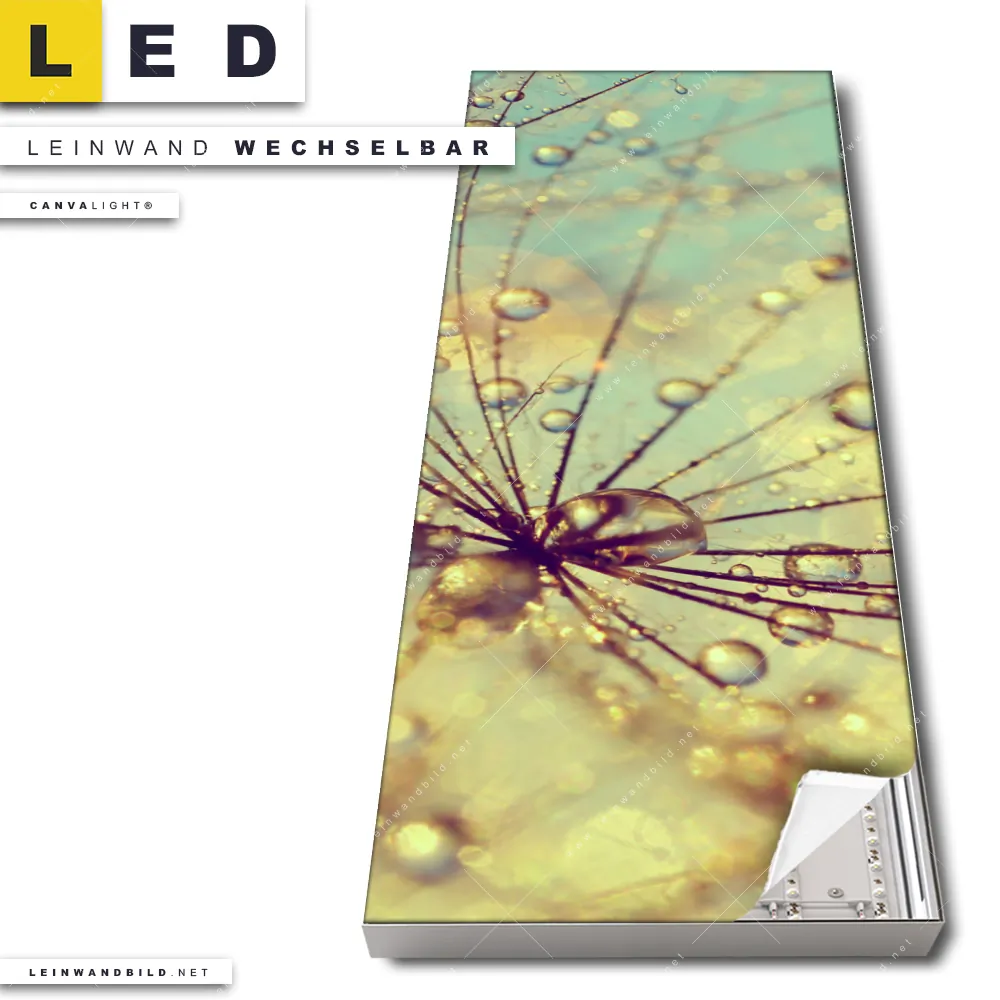 Du bist auf der Suche nach einem Blumen - Botanik LED Leinwandbild im Schmalen Format? Begriffe wie Blume, Botanik, Pflanze, Natur, Nahaufnahme, Pusteblume, Dandelion, Sonnenuntergang, Tautropfen haben Dich auf der Suche nach Deinem neuen XXL LED Wandbild mit wechselbarer Leinwand inspiriert? Farben wie Beige, Mint, Orange dürfen auf Deinem neuen Leinwand-LED-Bild im Panorama-Hochformat nicht fehlen und Leuchtbilder im Floral, Abstrakt Stil passen perfekt zu Deinem Einrichtungsstil?
