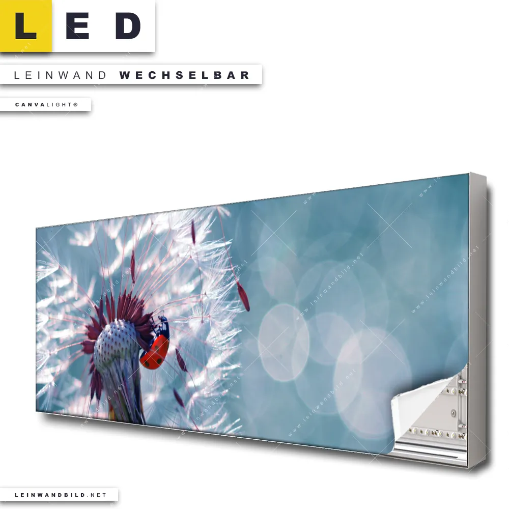 LED Leinwandbild Canvalight® TEX | Pusteblume & Marienkäfer | Panorama
