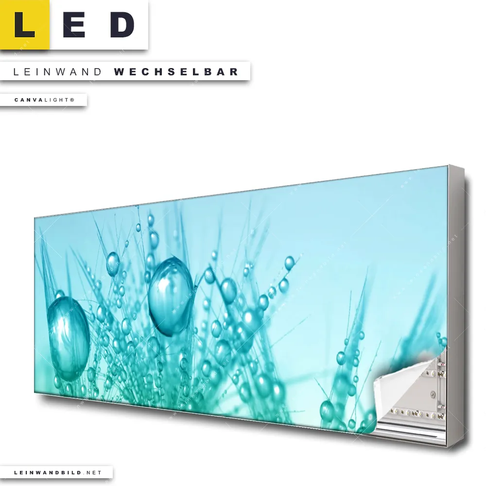 LED Leinwandbild Canvalight® TEX | Pusteblume mit Tautropfen | Panorama