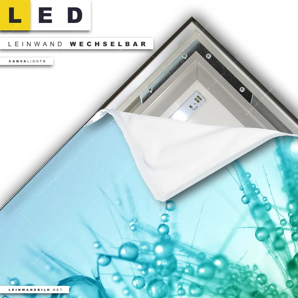 Du konfigurierst Dein individuelles LED Leinwandbild Canvalight® TEX | Pusteblume mit Tautropfen | Querformat und wir produzieren es NEU für Dich. Unsere Blumen - Botanik LED Bilder mit wechselbarer Textil-Leinwand sind KEINE Lagerware. Du bist Dir unsicher, welches Motiv oder Format das richtige für dein individuelles Canvalight® Leuchtbild ist, dann helfen wir dir gerne weiter und beraten dich!