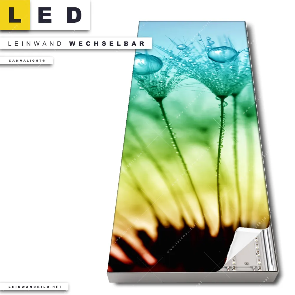 LED Leinwandbild Canvalight® TEX | Pusteblume mit Tautropfen | Schmal