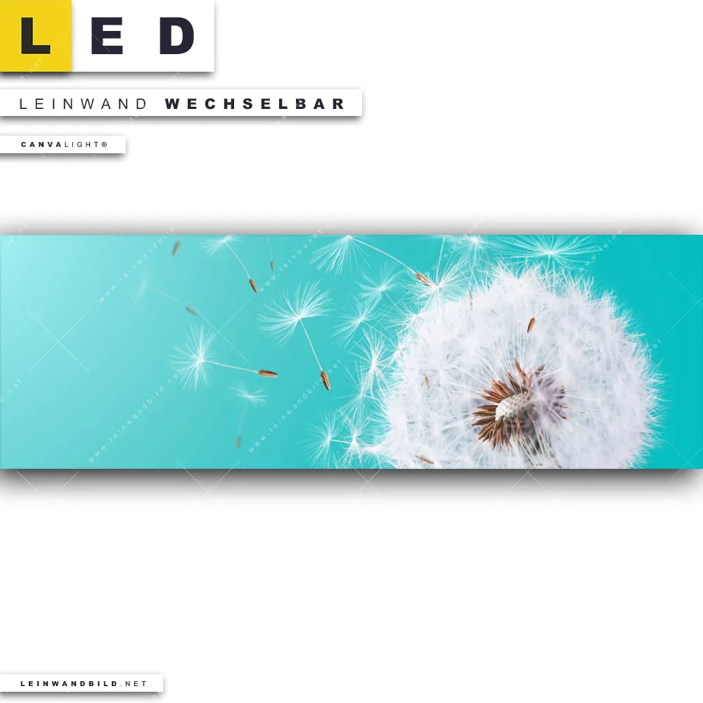 Du bist auf der Suche nach einem Blumen - Botanik LED Leinwandbild im Panorama-Format? Begriffe wie Blume, Botanik, Pflanze, Natur, Nahaufnahme, Pusteblume, Dandelion, Löwenzahn haben Dich auf der Suche nach Deinem neuen XXL LED Wandbild mit wechselbarer Leinwand inspiriert? Farben wie Türkis, Weiss dürfen auf Deinem neuen extra breiten Leinwand-LED-Bild nicht fehlen und Leuchtbilder im Minimalistisch, Floral Stil passen perfekt zu Deinem Einrichtungsstil?