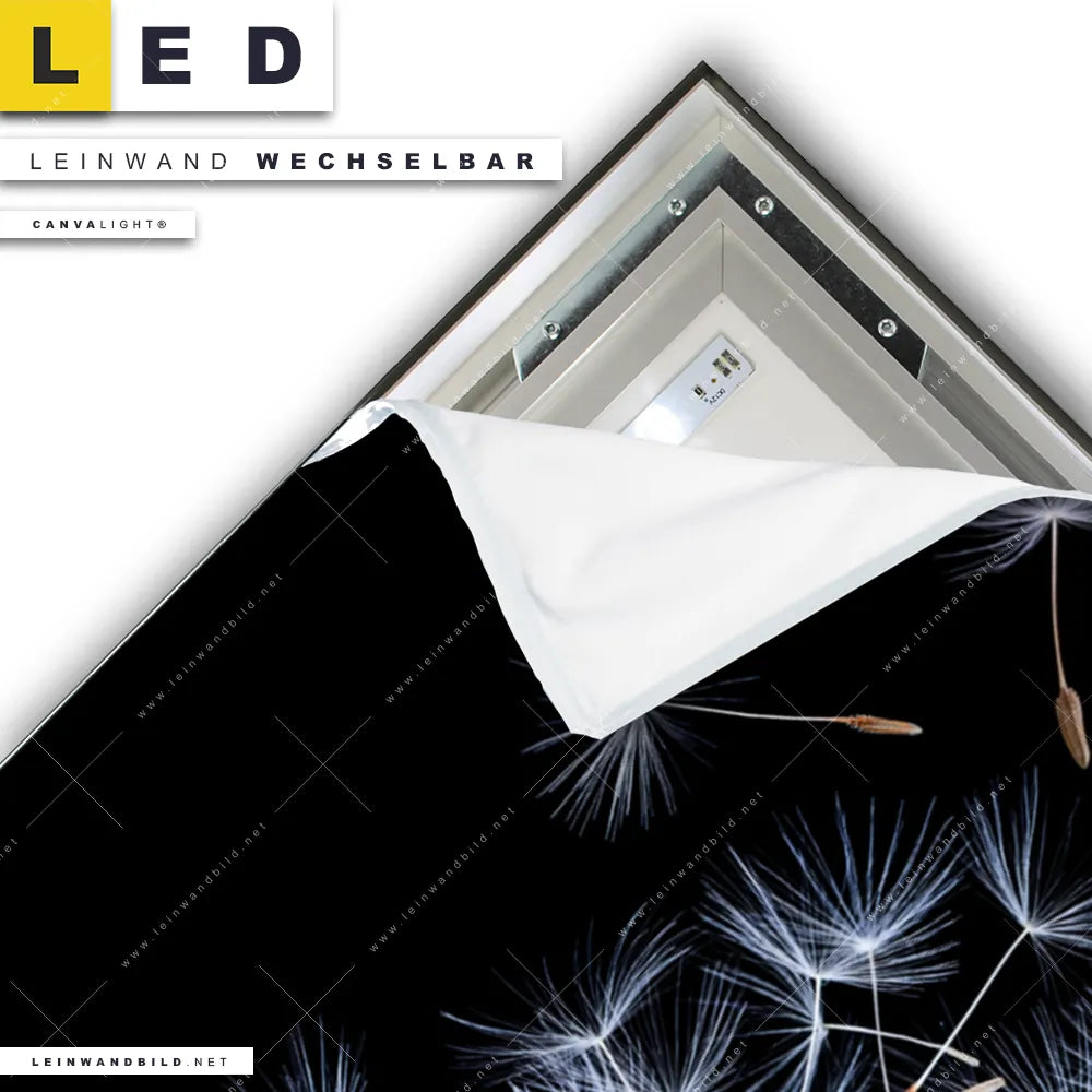 Du konfigurierst Dein individuelles LED Leinwandbild Canvalight® TEX | Pusteblume No. 6 | Hochformat und wir produzieren es NEU für Dich. Unsere Blumen - Botanik LED Bilder mit wechselbarer Textil-Leinwand sind KEINE Lagerware. Du bist Dir unsicher, welches Motiv oder Format das richtige für dein individuelles Canvalight® Leuchtbild ist, dann helfen wir dir gerne weiter und beraten dich!