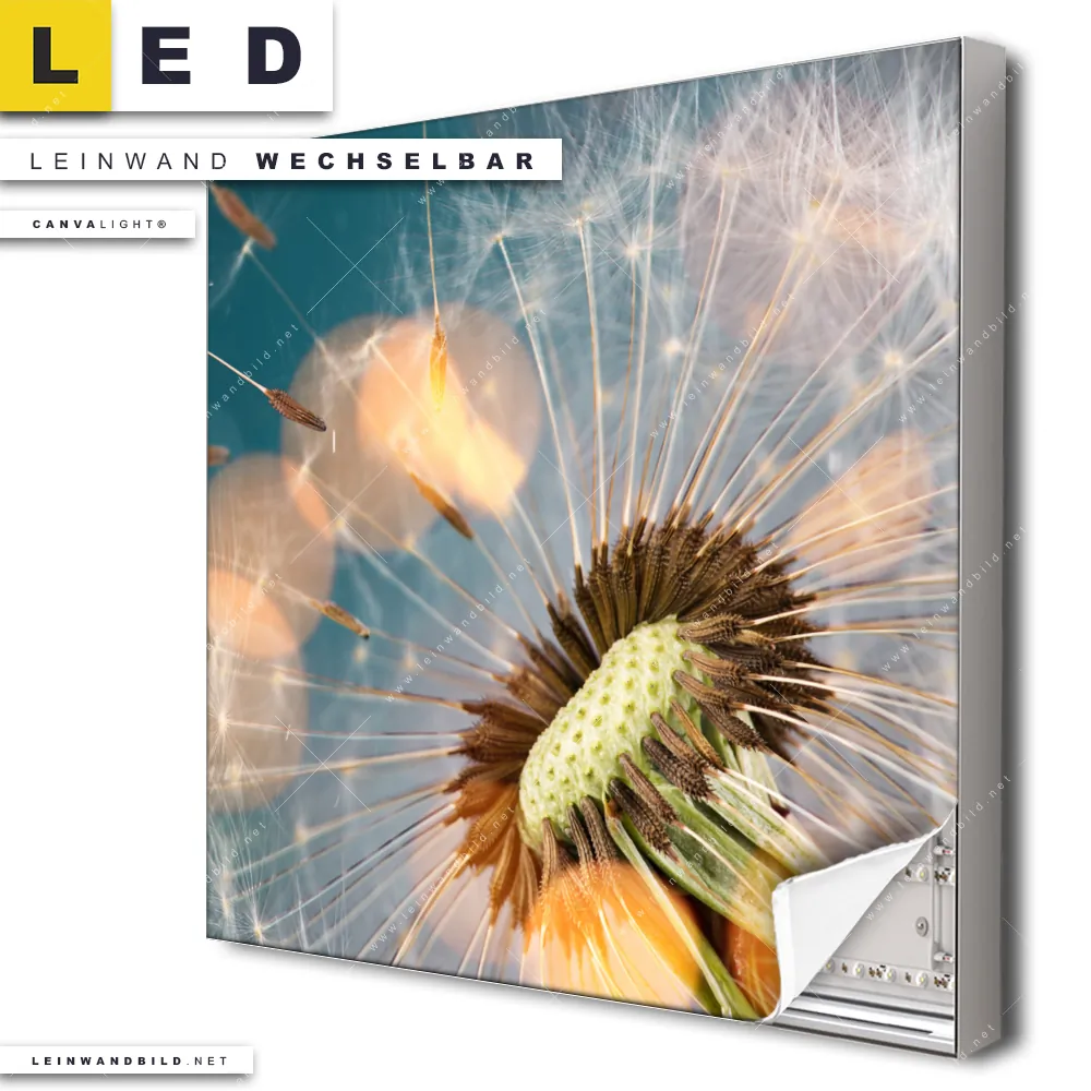 Du konfigurierst Dein individuelles LED Leinwandbild Canvalight® TEX | Pusteblume No. 7 | Quadrat und wir produzieren es NEU für Dich. Unsere Blumen - Botanik LED Bilder mit wechselbarer Textil-Leinwand sind KEINE Lagerware. Du bist Dir unsicher, welches Motiv oder Format das richtige für dein individuelles Canvalight® Leuchtbild ist, dann helfen wir dir gerne weiter und beraten dich!