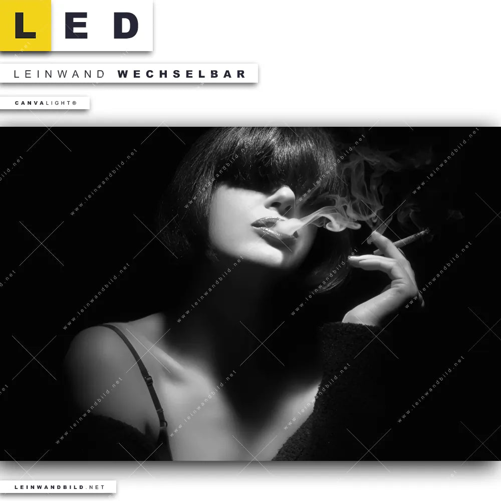 Du bist auf der Suche nach einem Porträts - Menschen LED Leinwandbild im Querformat? Begriffe wie Frau, Erotik, modern, sexy, Zigarette, rauchen, Akt, Körper haben Dich auf der Suche nach Deinem neuen XXL LED Wandbild mit wechselbarer Leinwand inspiriert? Farben wie Schwarz, Weiss dürfen auf Deinem neuen breiten Leinwand-LED-Bild nicht fehlen und Leuchtbilder im Modern Art, Schwarz - Weiss Stil passen perfekt zu Deinem Einrichtungsstil?