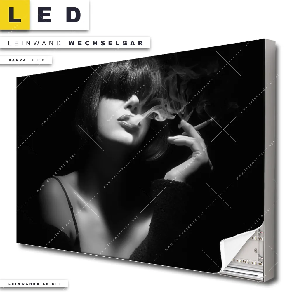 LED Leinwandbild Canvalight® TEX | Rauchende Lady | Querformat