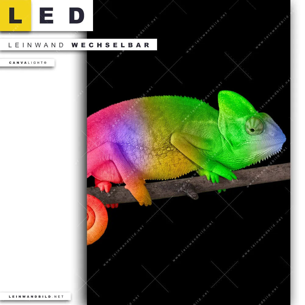 Du bist auf der Suche nach einem Tierwelt LED Leinwandbild im Hochformat? Begriffe wie Tiere, Farbe, bunt, Chamäleon, Regenbogen, Pop Art haben Dich auf der Suche nach Deinem neuen XXL LED Wandbild mit wechselbarer Leinwand inspiriert? Farben wie Schwarz, Bunt dürfen auf Deinem neuen Leinwand-LED-Bild nicht fehlen und Leuchtbilder im Mixed Media, Modern Art, Pop Art Stil passen perfekt zu Deinem Einrichtungsstil?