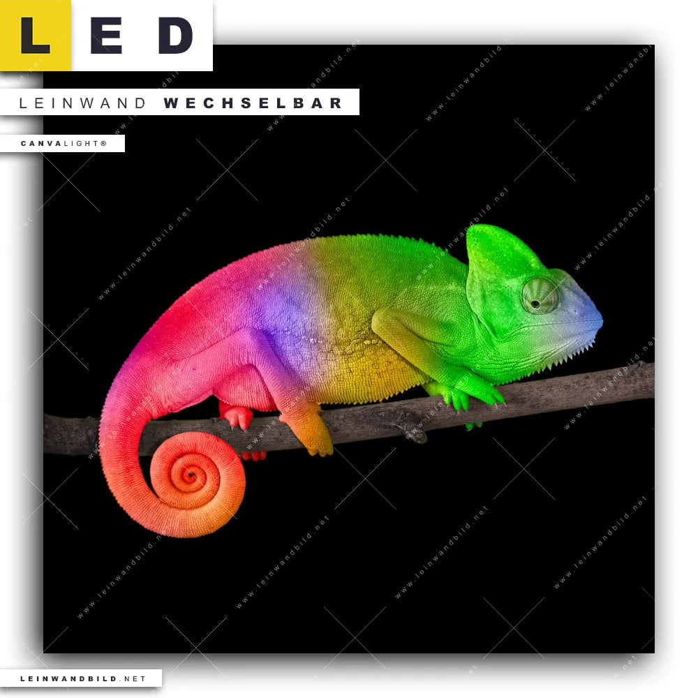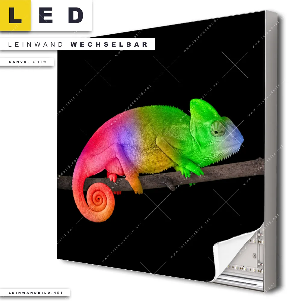 Du bist auf der Suche nach einem Tierwelt LED Leinwandbild im Quadratischen Format? Begriffe wie Tiere, Farbe, bunt, Chamäleon, Regenbogen, Pop Art haben Dich auf der Suche nach Deinem neuen XXL LED Wandbild mit wechselbarer Leinwand inspiriert? Farben wie Schwarz, Bunt dürfen auf Deinem neuen Leinwand-LED-Bild nicht fehlen und Leuchtbilder im Mixed Media, Modern Art, Pop Art Stil passen perfekt zu Deinem Einrichtungsstil?