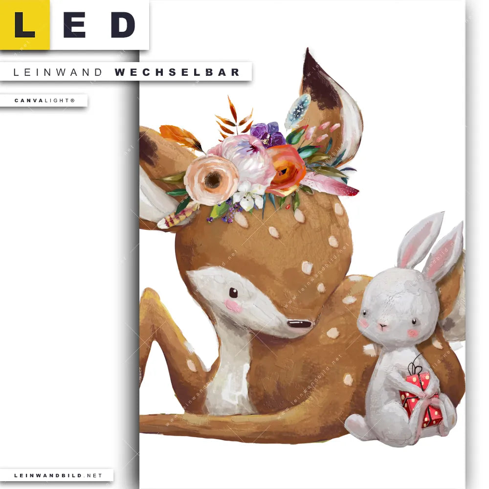 Du bist auf der Suche nach einem Tierwelt LED Leinwandbild im Hochformat? Begriffe wie Kinder, Reh, Hase, Tiere, Blumen, Aquarell, Kunst, Freunde haben Dich auf der Suche nach Deinem neuen XXL LED Wandbild mit wechselbarer Leinwand inspiriert? Farben wie Braun, Weiss, Grün, Rot, Lila, Rosa dürfen auf Deinem neuen Leinwand-LED-Bild nicht fehlen und Leuchtbilder im Modern Art Stil passen perfekt zu Deinem Einrichtungsstil?