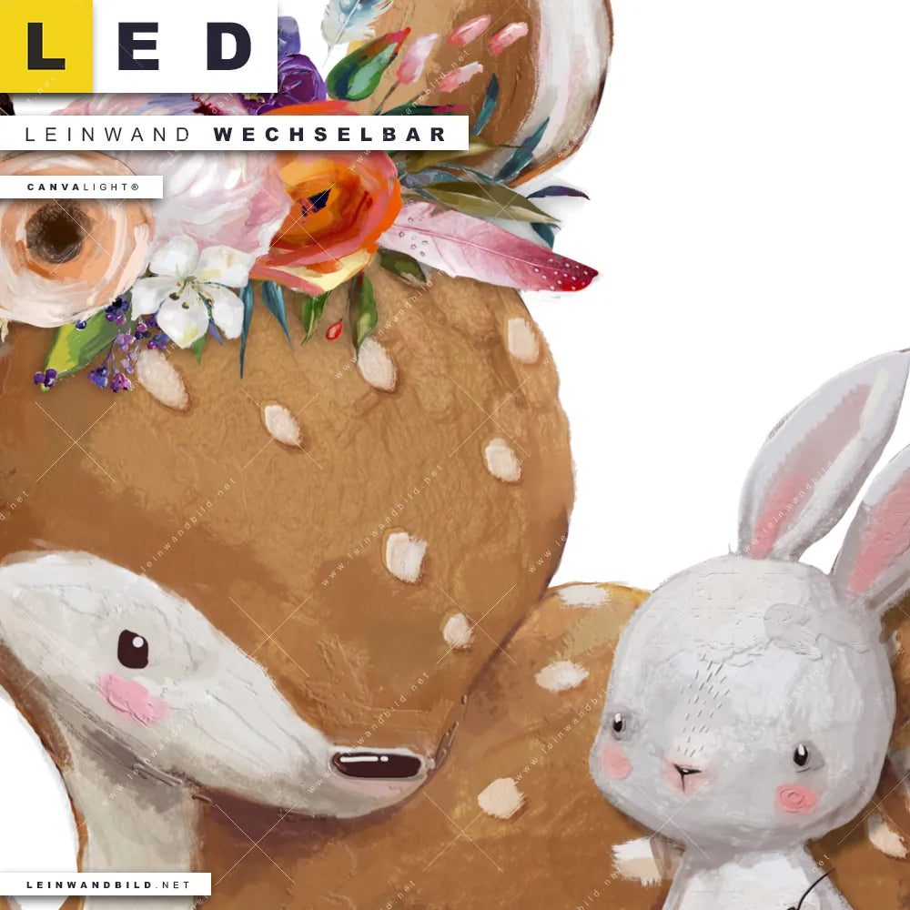 Du bist auf der Suche nach einem Tierwelt LED Leinwandbild im Quadratischen Format? Begriffe wie Kinder, Reh, Hase, Tiere, Blumen, Aquarell, Kunst, Freunde haben Dich auf der Suche nach Deinem neuen XXL LED Wandbild mit wechselbarer Leinwand inspiriert? Farben wie Braun, Weiss, Grün, Rot, Lila, Rosa dürfen auf Deinem neuen Leinwand-LED-Bild nicht fehlen und Leuchtbilder im Modern Art Stil passen perfekt zu Deinem Einrichtungsstil?