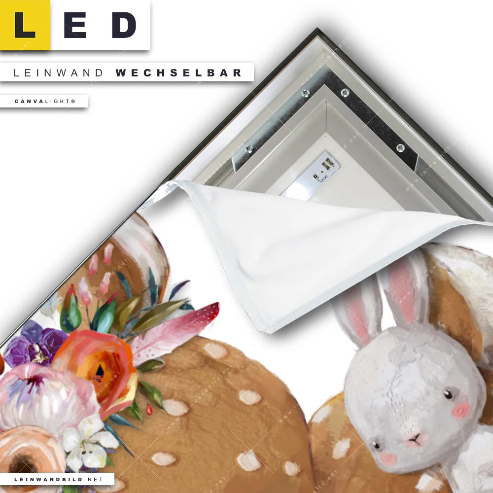 LED Leinwandbild Canvalight® TEX | Reh & Häschen | Querformat