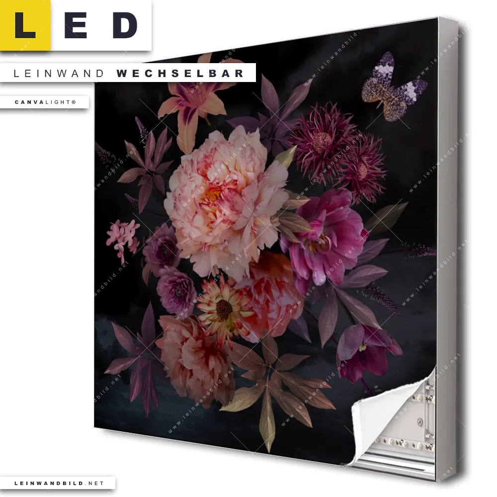 LED Leinwandbild Canvalight® TEX | Romantische Blumenillustration | Quadrat