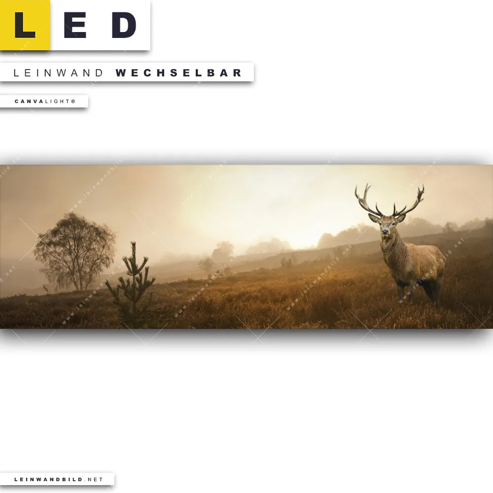 LED Leinwandbild Canvalight® TEX | Rothirsch im Nebel | Panorama