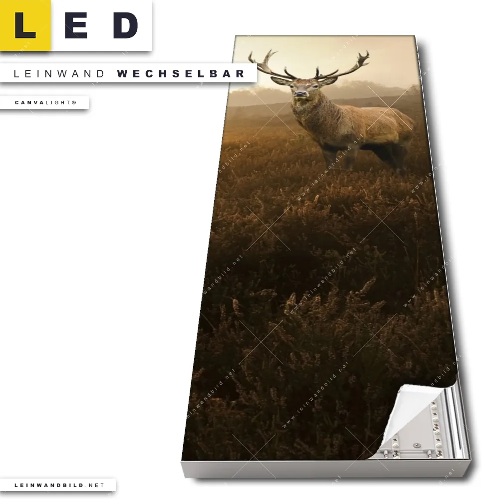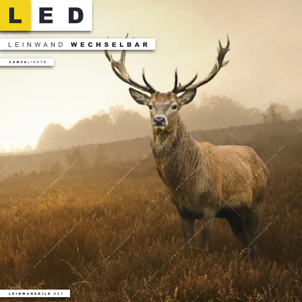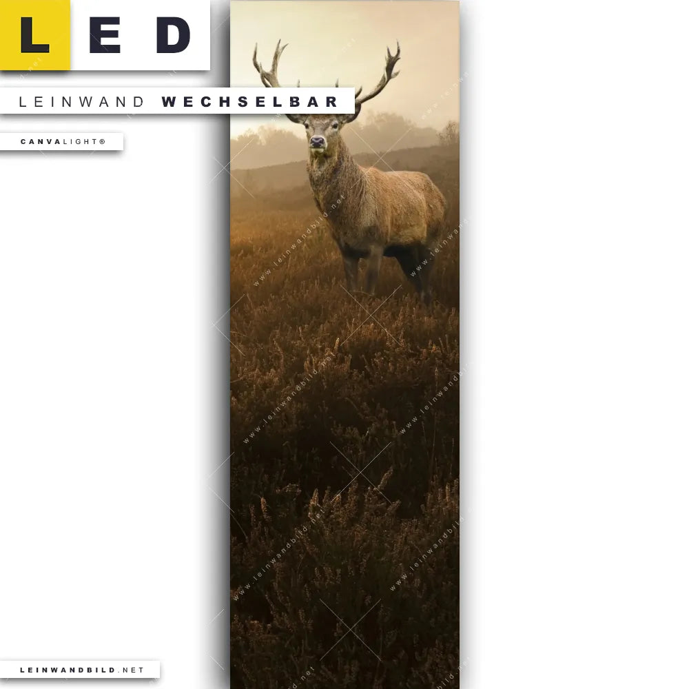 LED Leinwandbild Canvalight® TEX | Rothirsch im Nebel | Schmal