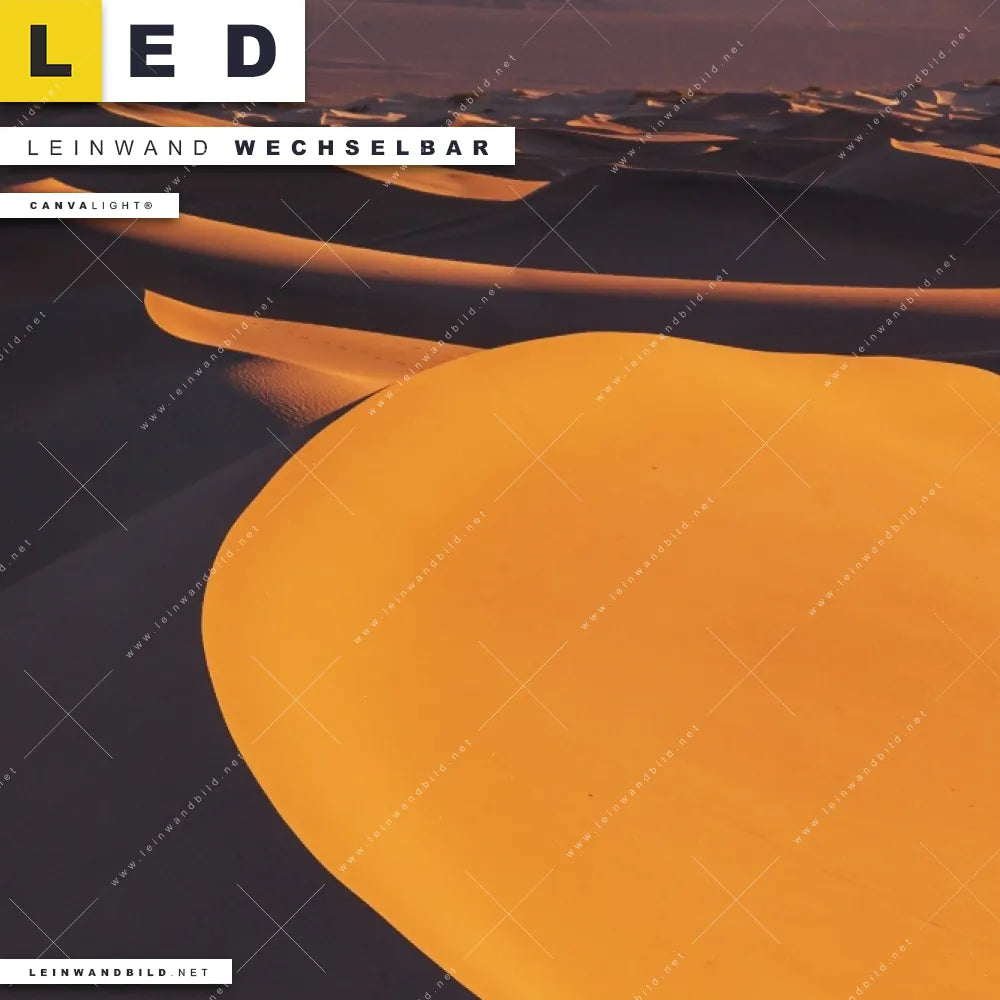 Du bist auf der Suche nach einem Landschaften LED Leinwandbild im Panorama-Format? Begriffe wie Sonnenuntergang, Sonnenaufgang, Sand, Landschaft, Urlaub, Reisen, Wüste, Düne haben Dich auf der Suche nach Deinem neuen XXL LED Wandbild mit wechselbarer Leinwand inspiriert? Farben wie Orange, Schwarz, Braun, Beige, Ocker dürfen auf Deinem neuen extra breiten Leinwand-LED-Bild nicht fehlen und Leuchtbilder im Natürlich - Realistisch Stil passen perfekt zu Deinem Einrichtungsstil?