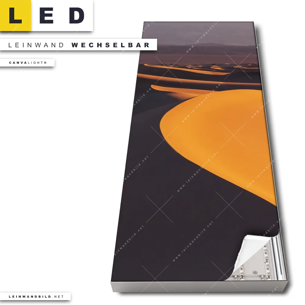 Du konfigurierst Dein individuelles LED Leinwandbild Canvalight® TEX | Sanddünen | Schmal und wir produzieren es NEU für Dich. Unsere Landschaften LED Bilder mit wechselbarer Textil-Leinwand sind KEINE Lagerware. Du bist Dir unsicher, welches Motiv oder Format das richtige für dein individuelles Canvalight® Leuchtbild ist, dann helfen wir dir gerne weiter und beraten dich!