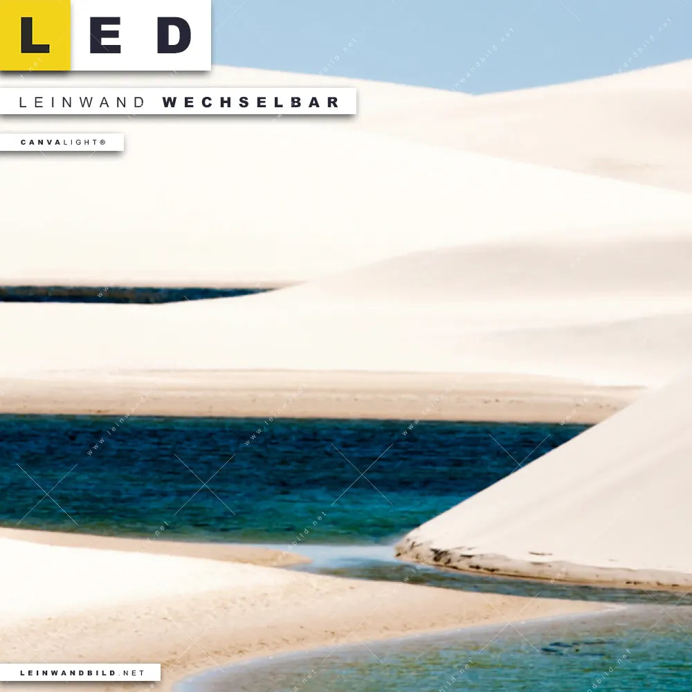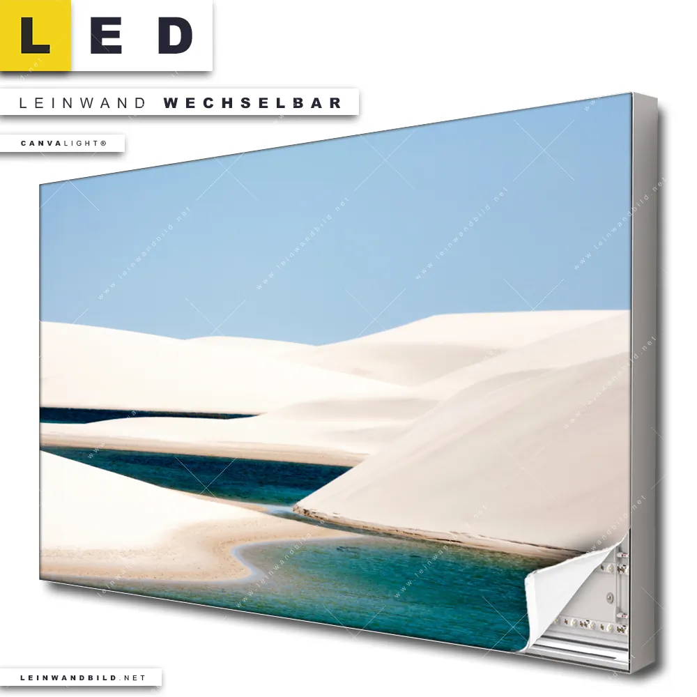 Du konfigurierst Dein individuelles LED Leinwandbild Canvalight® TEX | Sanddünen und Seen | Querformat und wir produzieren es NEU für Dich. Unsere Landschaften LED Bilder mit wechselbarer Textil-Leinwand sind KEINE Lagerware. Du bist Dir unsicher, welches Motiv oder Format das richtige für dein individuelles Canvalight® Leuchtbild ist, dann helfen wir dir gerne weiter und beraten dich!