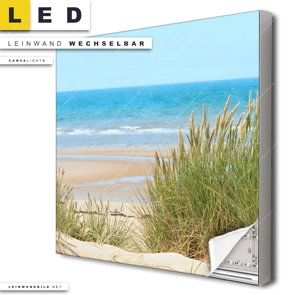 Du bist auf der Suche nach einem Landschaften, Strand - Meer LED Leinwandbild im Quadratischen Format? Begriffe wie Deutschland, Sommer, Urlaub - Reisen, Ostsee - Nordsee, Dünen, Gräser haben Dich auf der Suche nach Deinem neuen XXL LED Wandbild mit wechselbarer Leinwand inspiriert? Farben wie Beige, Grün, Blau dürfen auf Deinem neuen Leinwand-LED-Bild nicht fehlen und Leuchtbilder im Retro - Vintage, Natürlich - Realistisch Stil passen perfekt zu Deinem Einrichtungsstil?