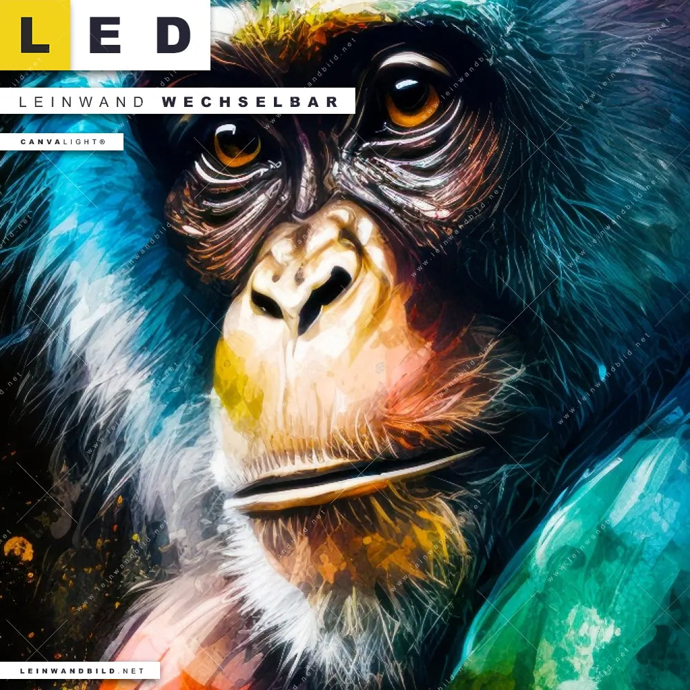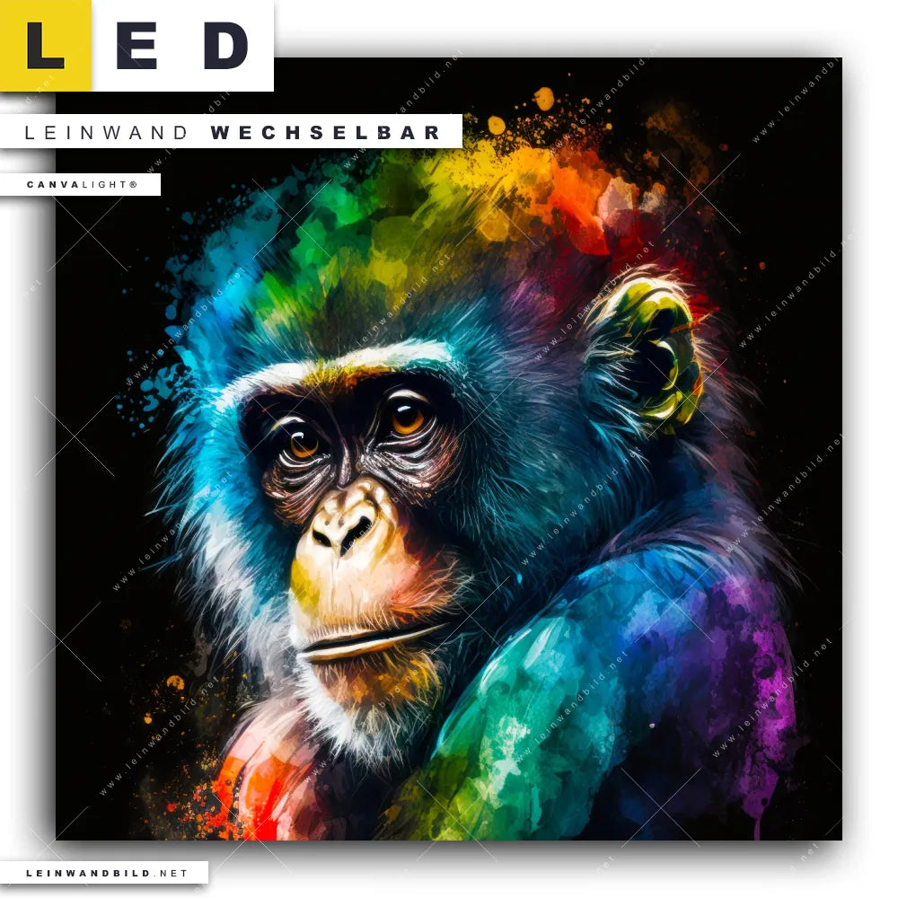 LED Leinwandbild Canvalight® TEX | Schimpanse in bunten Farben | Quadrat