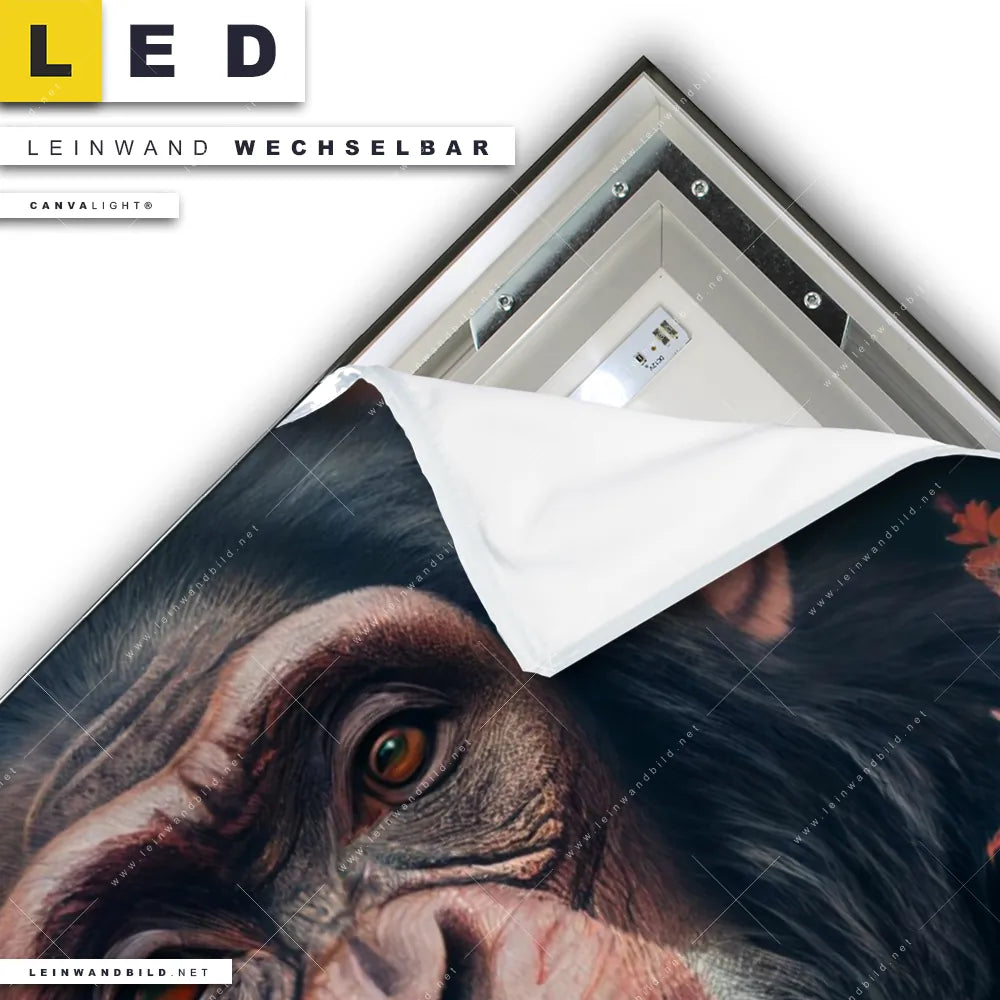 LED Leinwandbild Canvalight® TEX | Schimpanse zwischen Blumen | Querformat