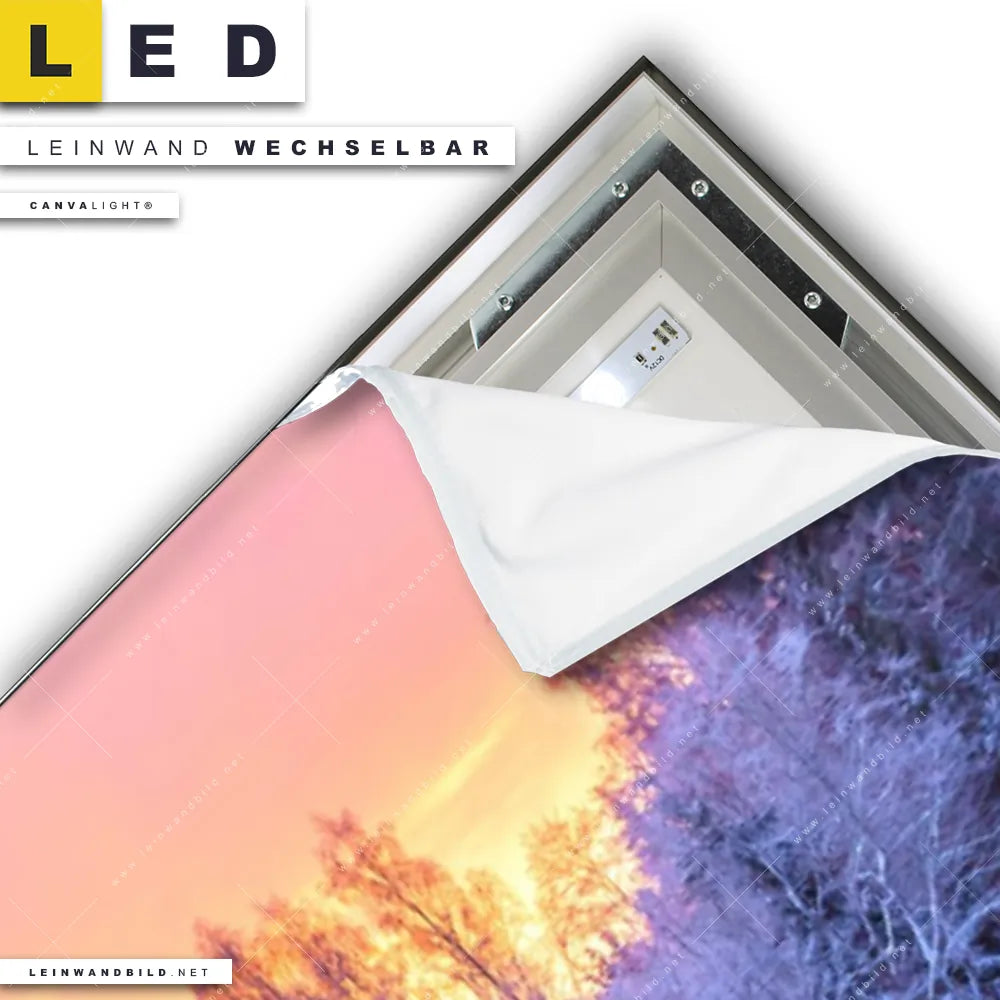 Du konfigurierst Dein individuelles LED Leinwandbild Canvalight® TEX | Schöne Winterlandschaft | Panorama und wir produzieren es NEU für Dich. Unsere Landschaften, Winter, Wald - Bäume LED Bilder mit wechselbarer Textil-Leinwand sind KEINE Lagerware. Du bist Dir unsicher, welches Motiv oder Format das richtige für dein individuelles Canvalight® Leuchtbild ist, dann helfen wir dir gerne weiter und beraten dich!
