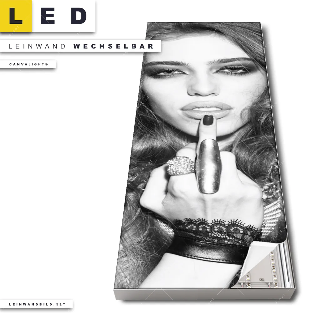 LED Leinwandbild Canvalight® TEX | Schöner Mittelfinger | Schmal