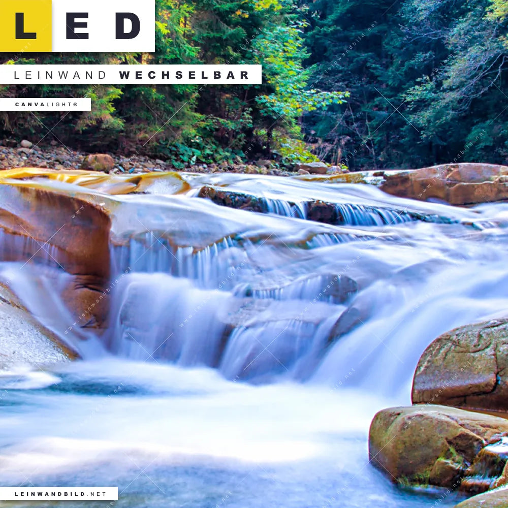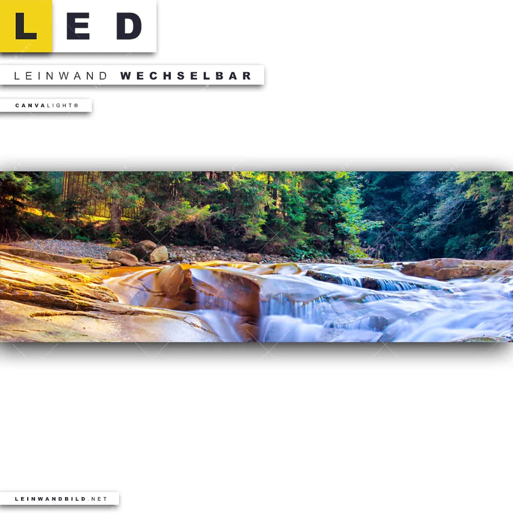 LED Leinwandbild Canvalight® TEX | Schöner Wasserfall im Wald | Panorama