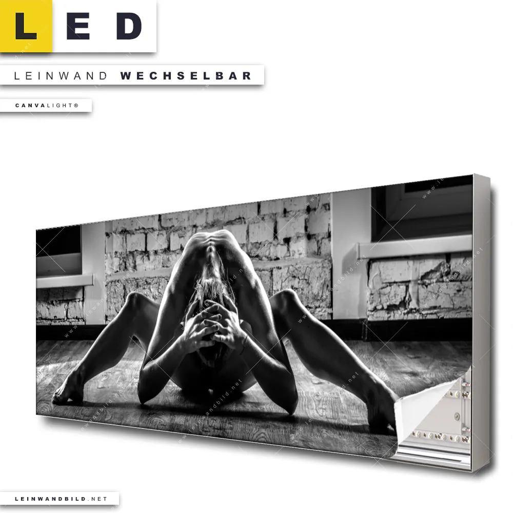 Dann sollte das LED Leinwandbild Canvalight® TEX | Schönheit der Frau | Panorama den Weg zu Dir finden. Das stufenlos dimmbare Leinwandbild erotische Pose im steckerfertigen Leuchtrahmen mit Fernbedienung und optionaler Farbtemperatursteuerung fügt sich als Eye-Catcher harmonisch in jedes Wohnzimmer - Schlafzimmer Raumkonzept ein.