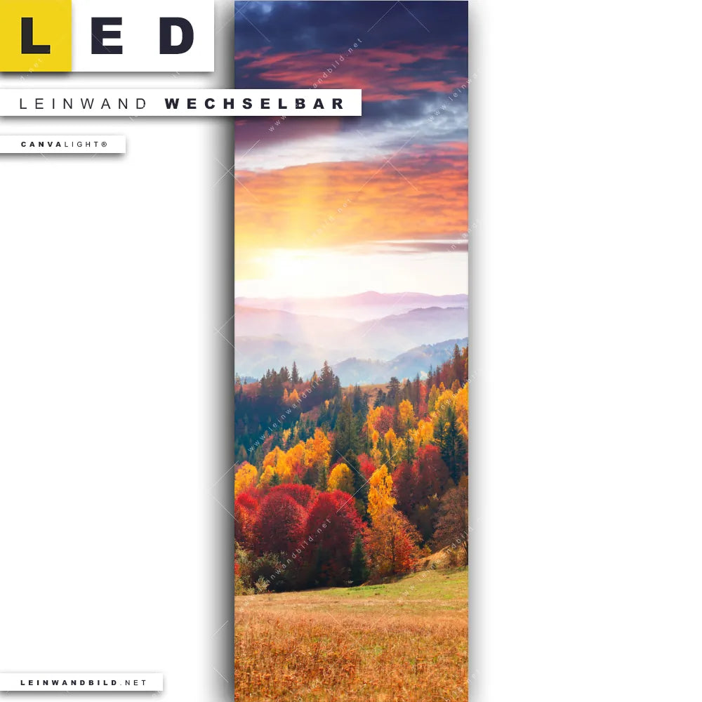 Du bist auf der Suche nach einem Landschaften LED Leinwandbild im Schmalen Format? Begriffe wie Wald, Landschaft, Bäume, Natur, Baum, Buche, Ruhe, Stille haben Dich auf der Suche nach Deinem neuen XXL LED Wandbild mit wechselbarer Leinwand inspiriert? Farben wie Braun, Orange, Lila, Grün dürfen auf Deinem neuen Leinwand-LED-Bild im Panorama-Hochformat nicht fehlen und Leuchtbilder im Natürlich - Realistisch Stil passen perfekt zu Deinem Einrichtungsstil?