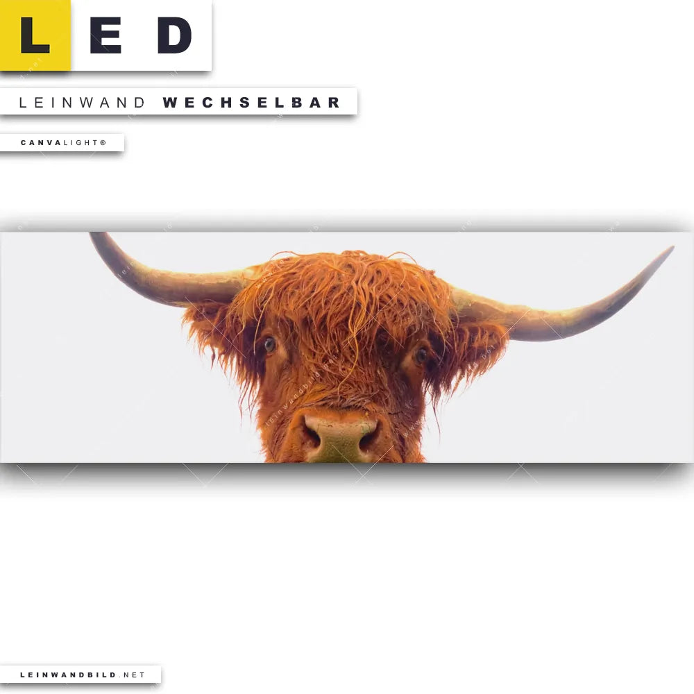 LED Leinwandbild Canvalight® TEX | Schottisches Hochlandrind | Panorama