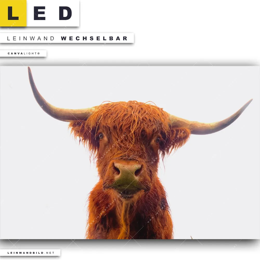 Du bist auf der Suche nach einem Tierwelt LED Leinwandbild im Querformat? Begriffe wie Tier, Stier, Hochlandkuh, Highlander, Büffel, Rind, Bulle, Hochland, Kuh, Hochlandrind haben Dich auf der Suche nach Deinem neuen XXL LED Wandbild mit wechselbarer Leinwand inspiriert? Farben wie Braun, Grün, Weiss dürfen auf Deinem neuen breiten Leinwand-LED-Bild nicht fehlen und Leuchtbilder im Modern Art, Natürlich - Realistisch Stil passen perfekt zu Deinem Einrichtungsstil?