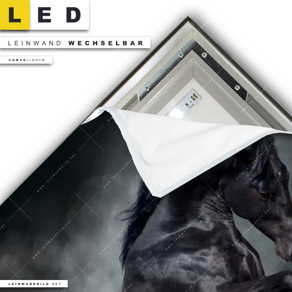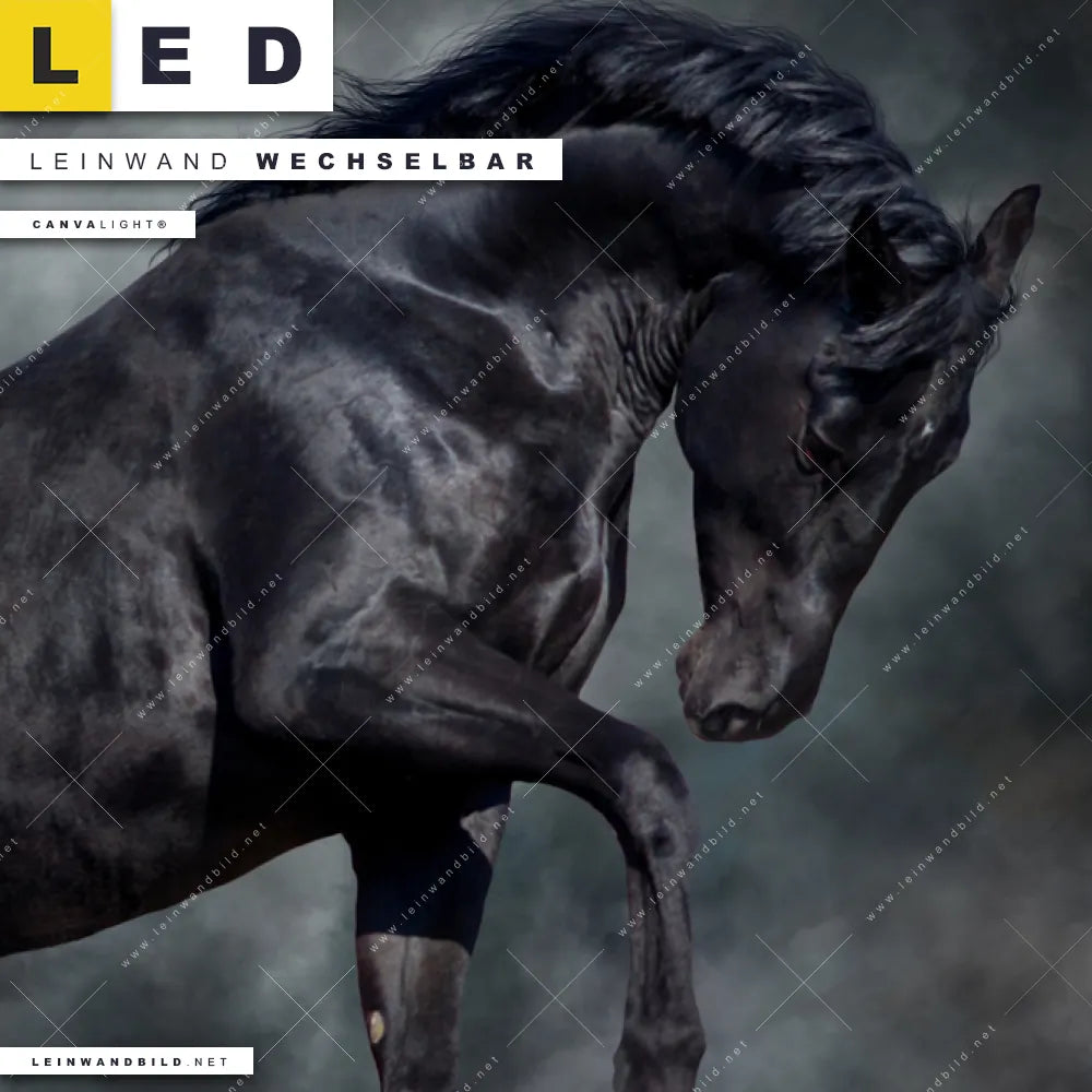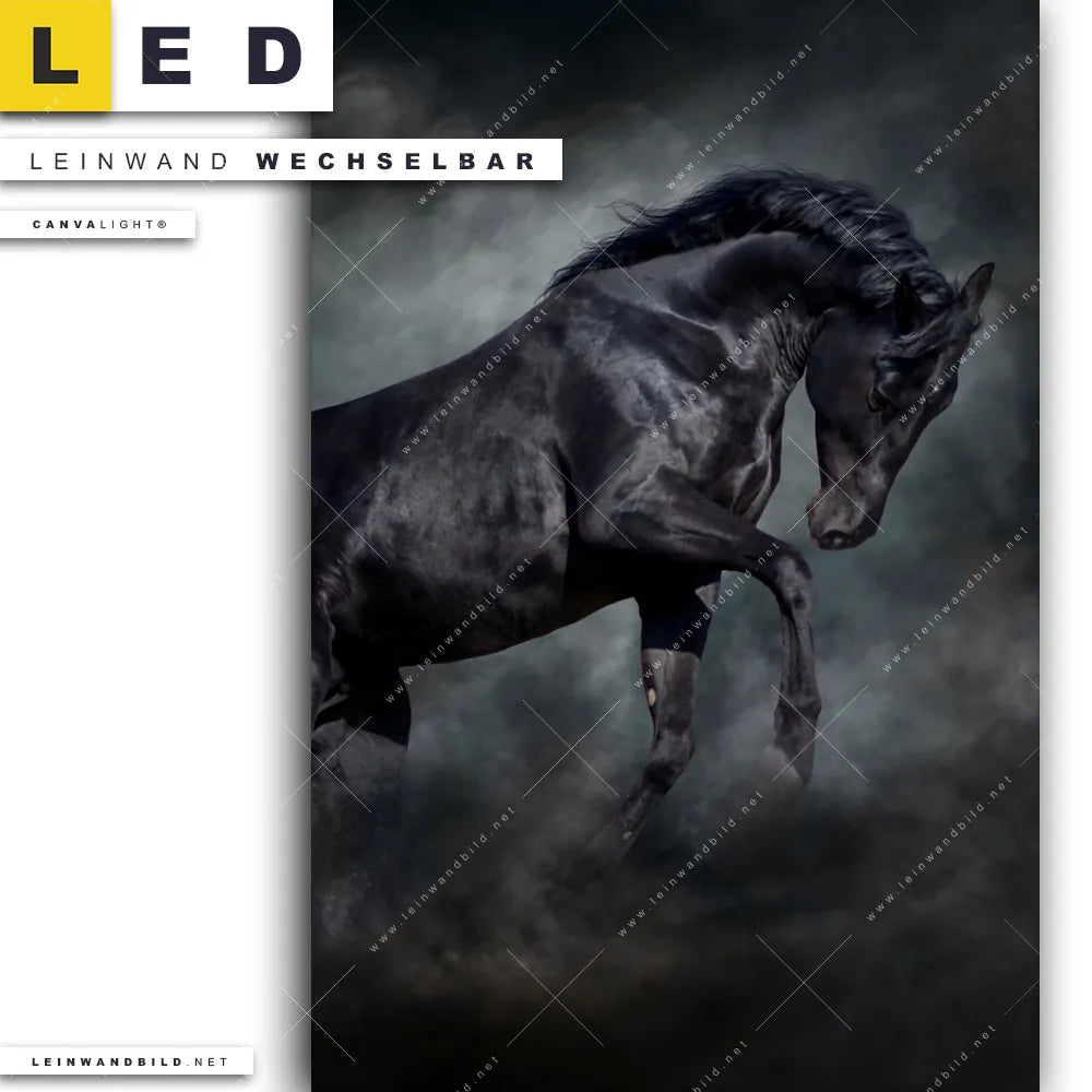 LED Leinwandbild Canvalight® TEX | Schwarzer Hengst | Hochformat