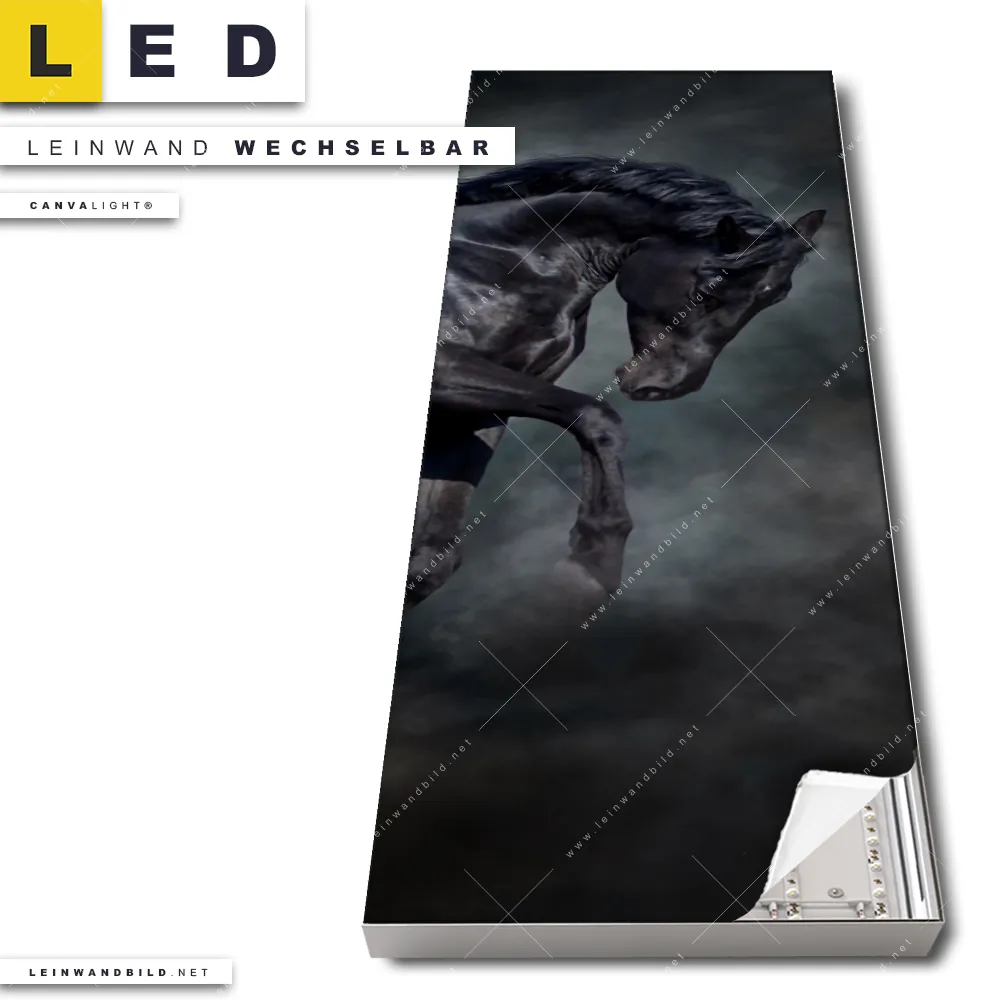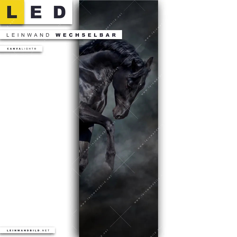 LED Leinwandbild Canvalight® TEX | Schwarzer Hengst | Schmal