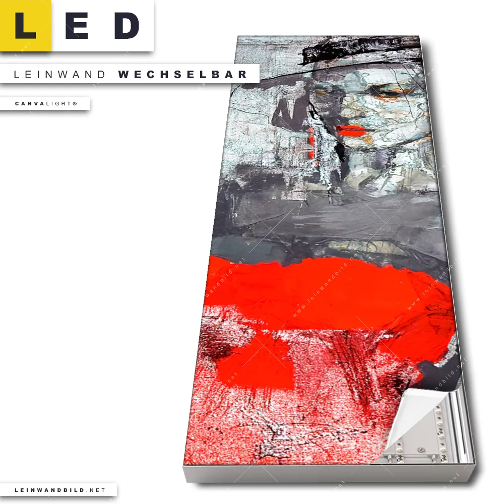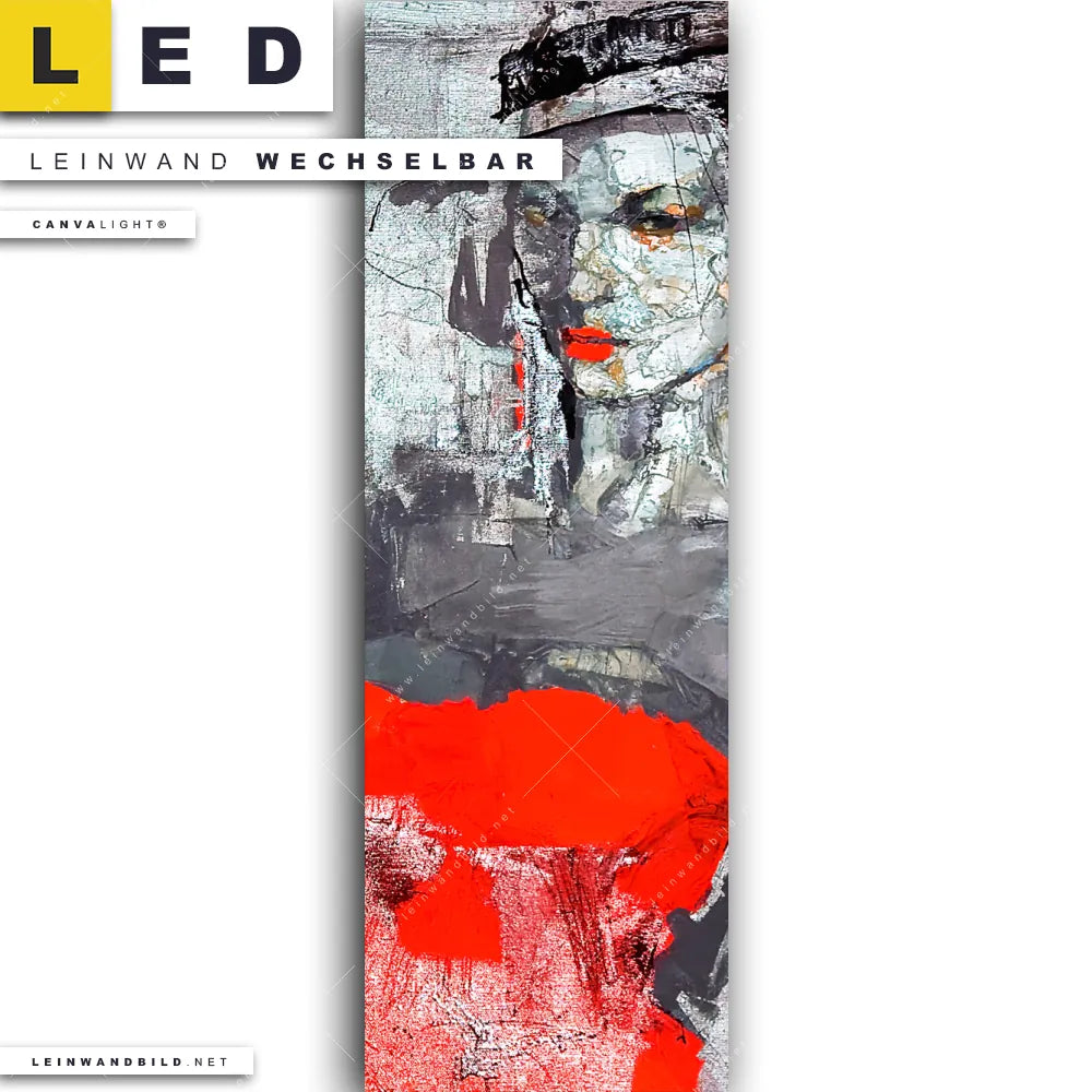 Du bist auf der Suche nach einem Porträts - Menschen LED Leinwandbild im Schmalen Format? Begriffe wie Abstrakt, Modern, Kunst, Gemälde, Leinwand, Frau, Portrait, Geheimnis, schweigen, Lippen haben Dich auf der Suche nach Deinem neuen XXL LED Wandbild mit wechselbarer Leinwand inspiriert? Farben wie Weiss, Schwarz, Grau , Rot dürfen auf Deinem neuen Leinwand-LED-Bild im Panorama-Hochformat nicht fehlen und Leuchtbilder im Abstrakt, Modern Art Stil passen perfekt zu Deinem Einrichtungsstil?
