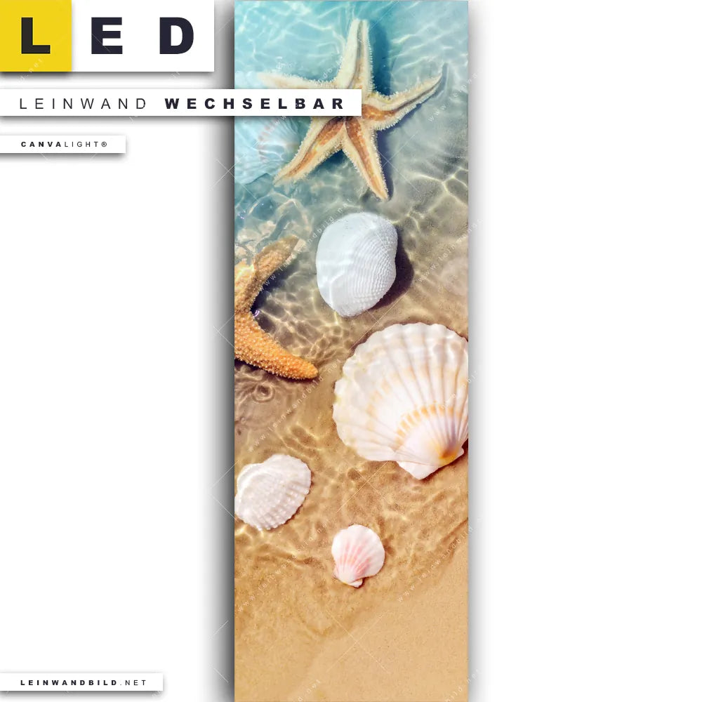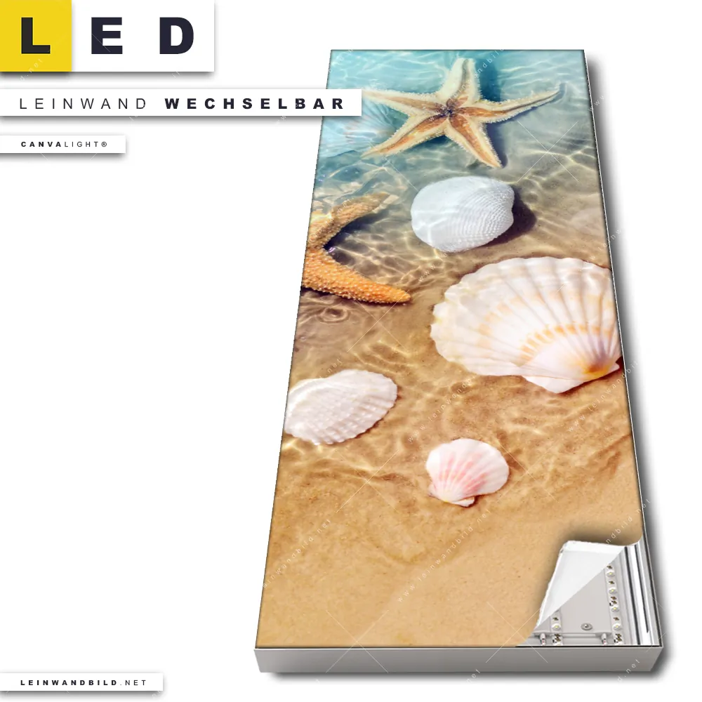 LED Leinwandbild Canvalight® TEX | Seesterne & Muscheln | Schmal