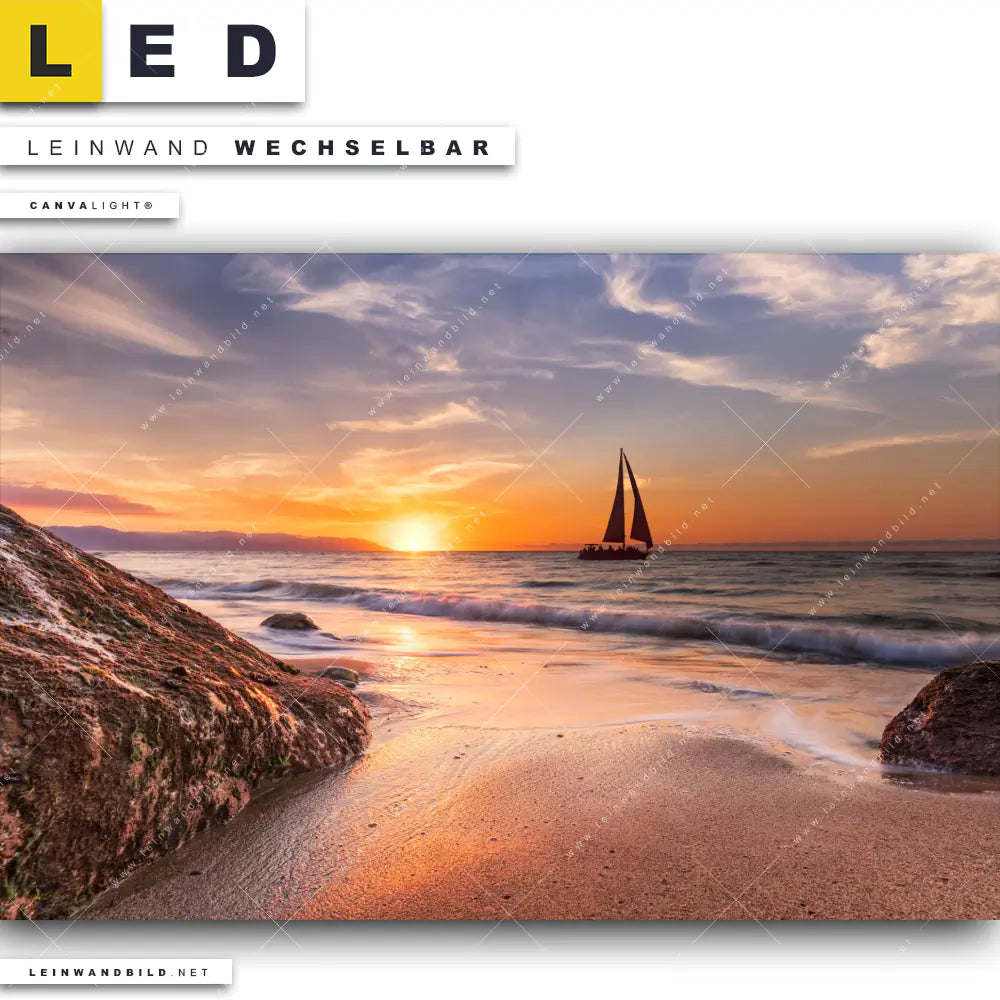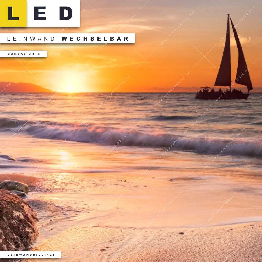 Du bist auf der Suche nach einem Landschaften, Strand - Meer LED Leinwandbild im Querformat? Begriffe wie Wasser, Ozean, Küste, Horizont, Sommer, Sonnenaufgang, Sonnenuntergang, Urlaub, Reisen, Boot, Segelboot, Felsen, Strand haben Dich auf der Suche nach Deinem neuen XXL LED Wandbild mit wechselbarer Leinwand inspiriert? Farben wie Beige, Braun, Orange, Blau dürfen auf Deinem neuen breiten Leinwand-LED-Bild nicht fehlen und Leuchtbilder im Natürlich - Realistisch Stil passen perfekt zu Deinem Einrichtungsstil?