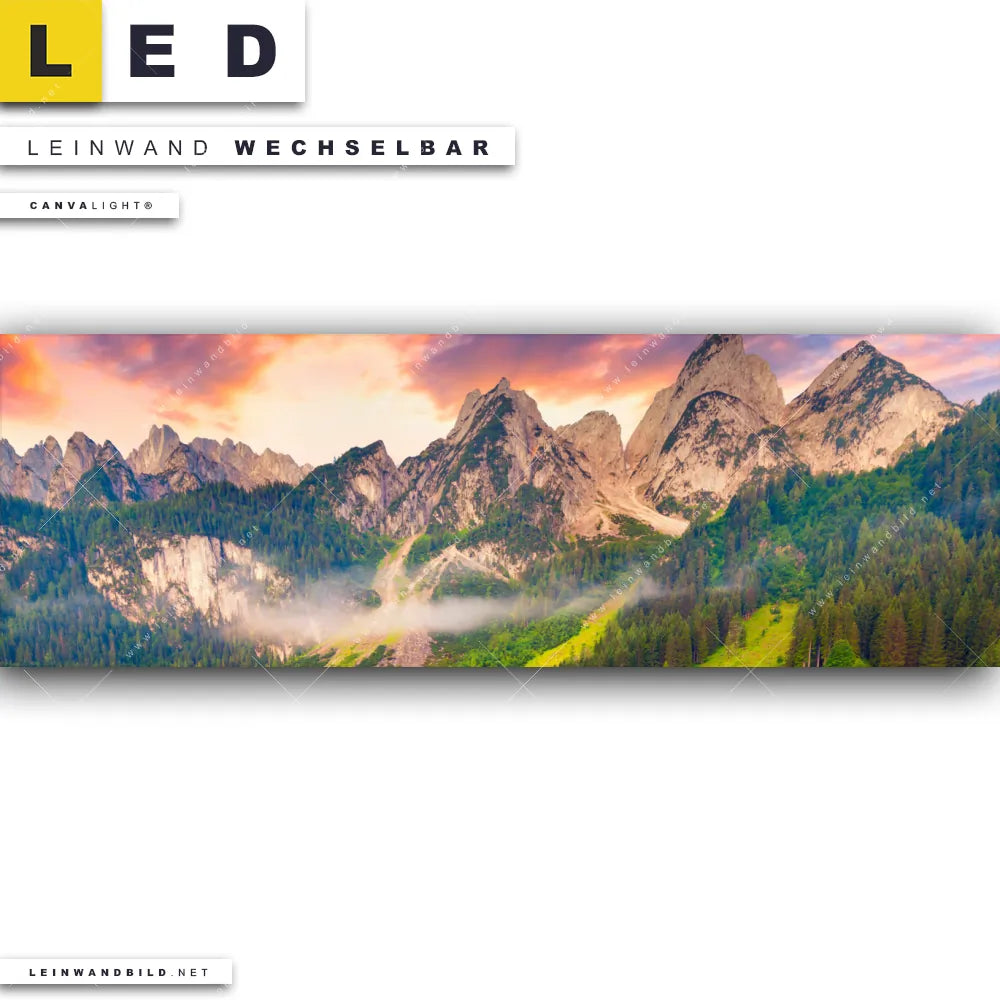 LED Leinwandbild Canvalight® TEX | Sonnenaufgang am Bergsee | Panorama