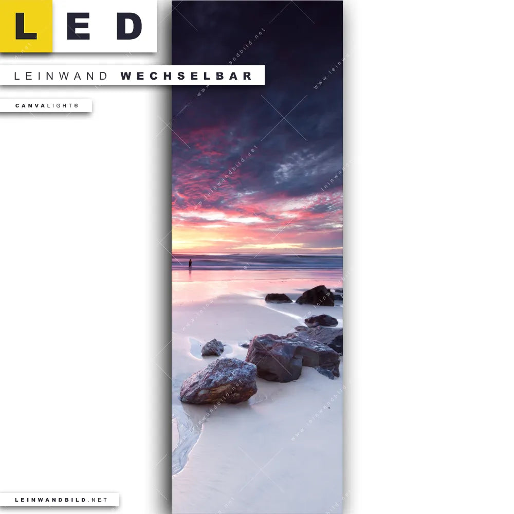 Du bist auf der Suche nach einem Landschaften, Strand - Meer LED Leinwandbild im Schmalen Format? Begriffe wie Felsen, Sommer, Sonnenuntergang - Sonnenaufgang, Ostsee - Nordsee, Deutschland, Urlaub - Reisen, Steine haben Dich auf der Suche nach Deinem neuen XXL LED Wandbild mit wechselbarer Leinwand inspiriert? Farben wie Lila, Orange, Weiss, Blau, Rot dürfen auf Deinem neuen Leinwand-LED-Bild im Panorama-Hochformat nicht fehlen und Leuchtbilder im Natürlich - Realistisch, Modern Art Stil passen perfekt zu Deinem Einrichtungsstil?