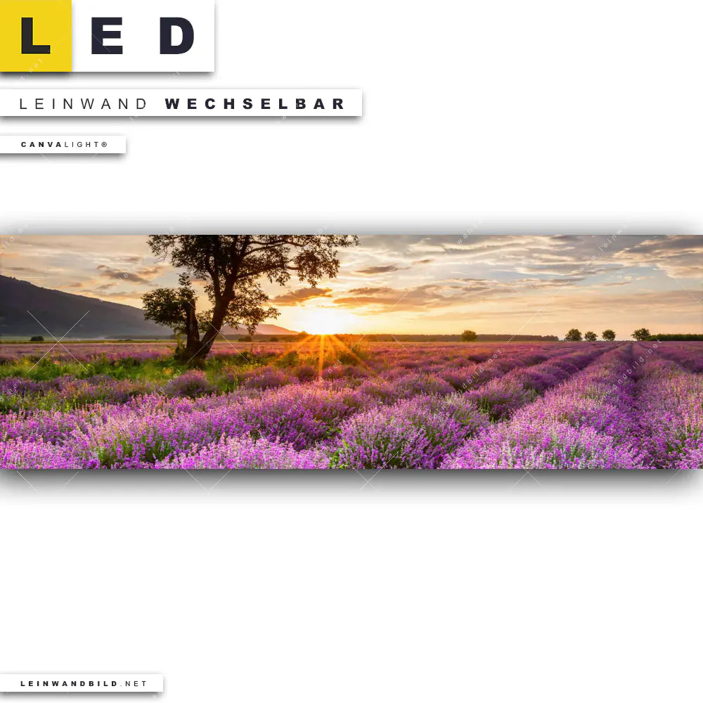 LED Leinwandbild Canvalight® TEX | Sonnenaufgang im Lavendelfeld | Panorama