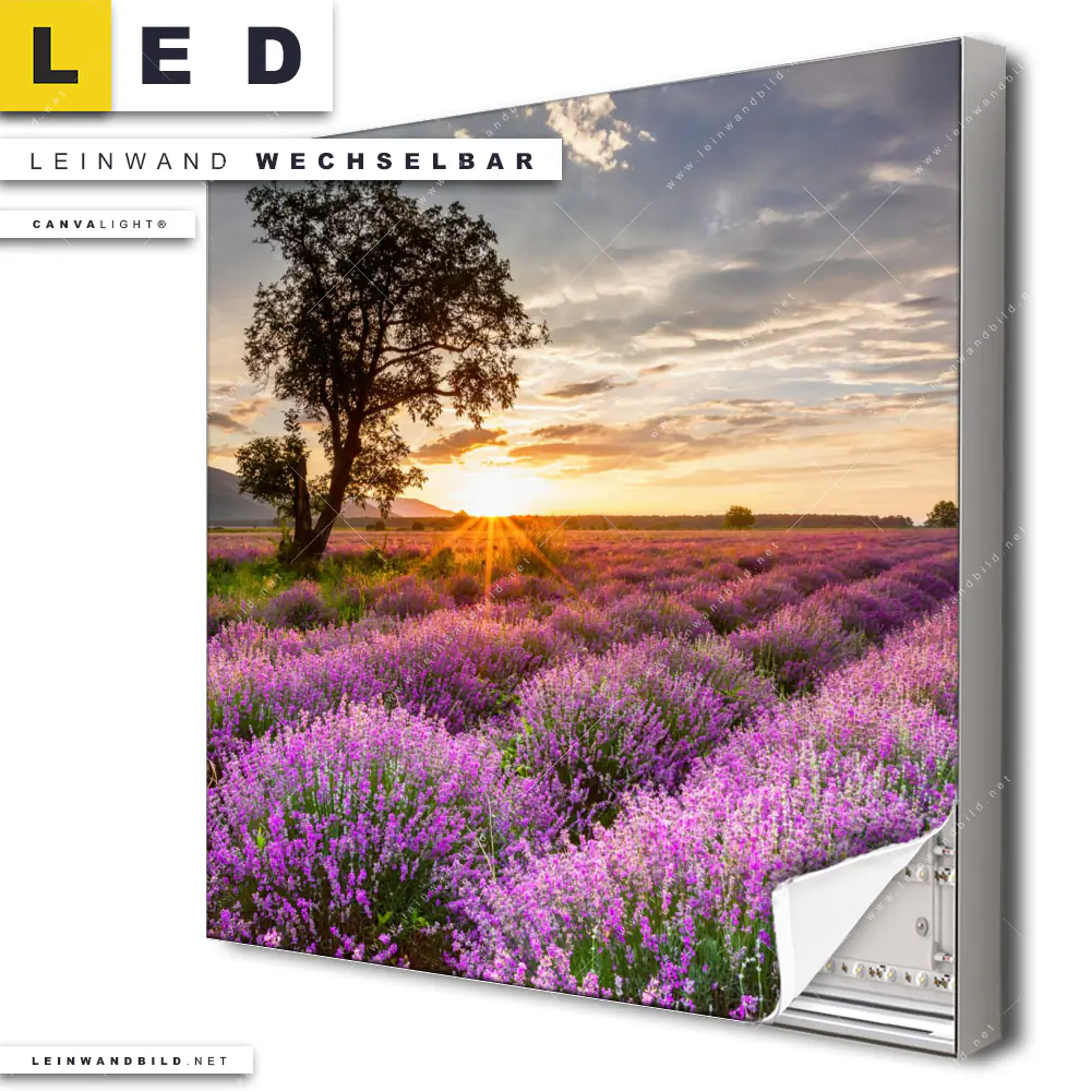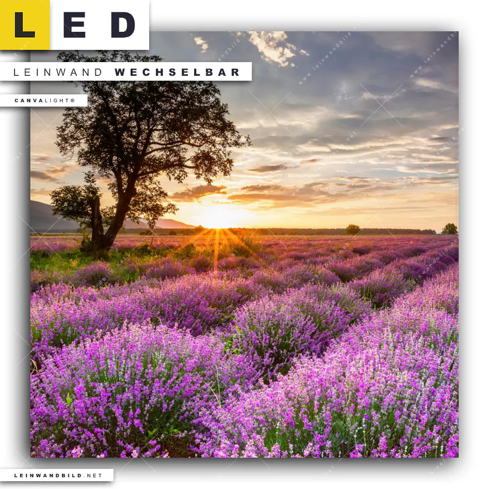 Du bist auf der Suche nach einem Landschaften LED Leinwandbild im Quadratischen Format? Begriffe wie Blumen, Baum, Feld, Sonnenuntergang, Wiese, Himmel, Sonnenaufgang, Lavendel, Natur haben Dich auf der Suche nach Deinem neuen XXL LED Wandbild mit wechselbarer Leinwand inspiriert? Farben wie Lila, Orange, Grau , Braun dürfen auf Deinem neuen Leinwand-LED-Bild nicht fehlen und Leuchtbilder im Natürlich - Realistisch, Floral Stil passen perfekt zu Deinem Einrichtungsstil?