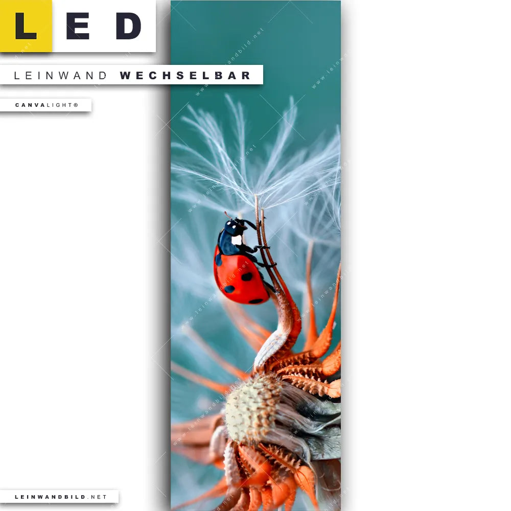 LED Leinwandbild Canvalight® TEX | Sonnenkäfer auf Pusteblume | Schmal