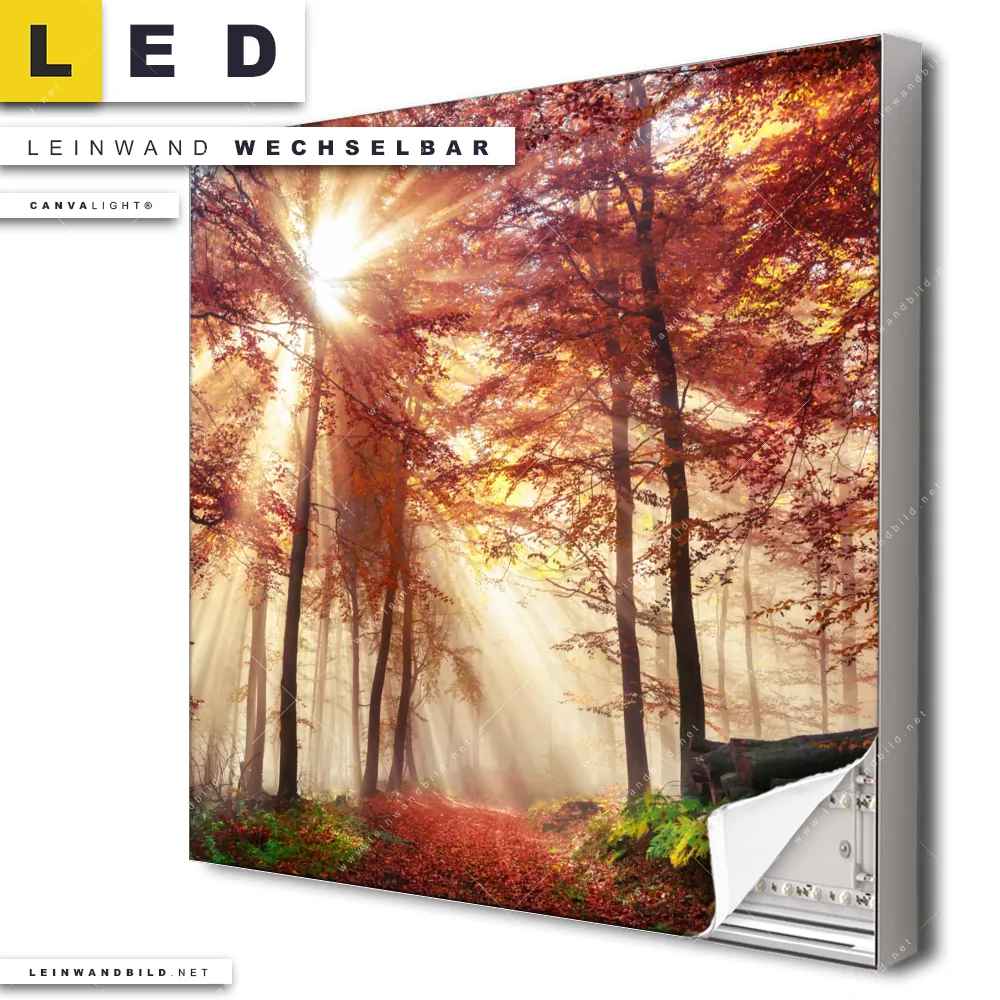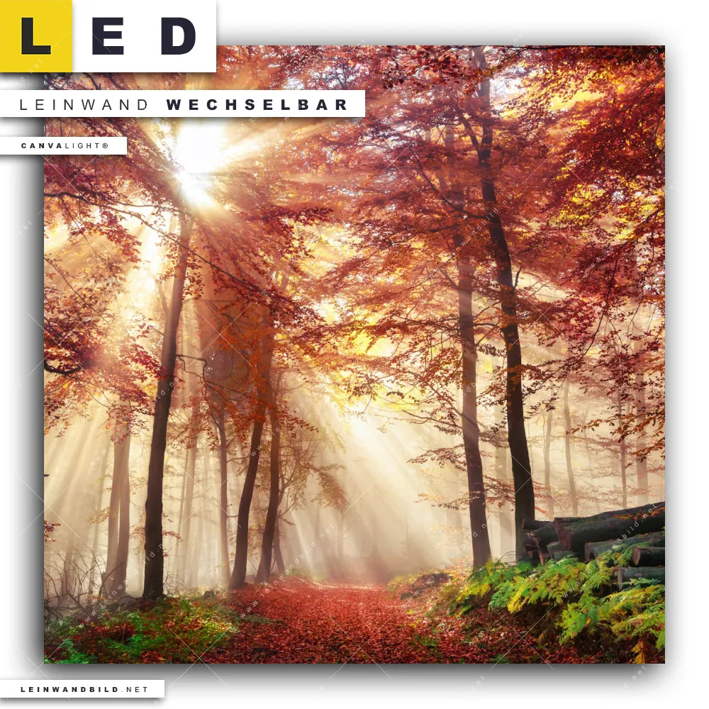 Du bist auf der Suche nach einem Landschaften, Wald - Bäume LED Leinwandbild im Quadratischen Format? Begriffe wie Wald, Landschaft, Baum, Bäume, Natur, Sonne, Sonnenstrahlen, Licht, Sonnenlicht, Laubwald, Nebel, Dunst, Herbst, Laub haben Dich auf der Suche nach Deinem neuen XXL LED Wandbild mit wechselbarer Leinwand inspiriert? Farben wie Grün, Braun, Beige dürfen auf Deinem neuen Leinwand-LED-Bild nicht fehlen und Leuchtbilder im Natürlich - Realistisch Stil passen perfekt zu Deinem Einrichtungsstil?