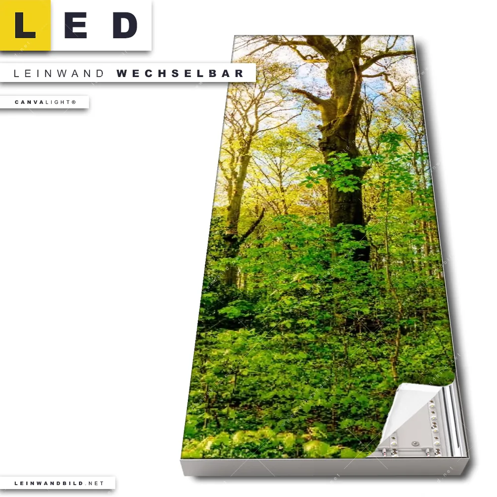 LED Leinwandbild Canvalight® TEX | Sonnenlicht im Wald | Schmal