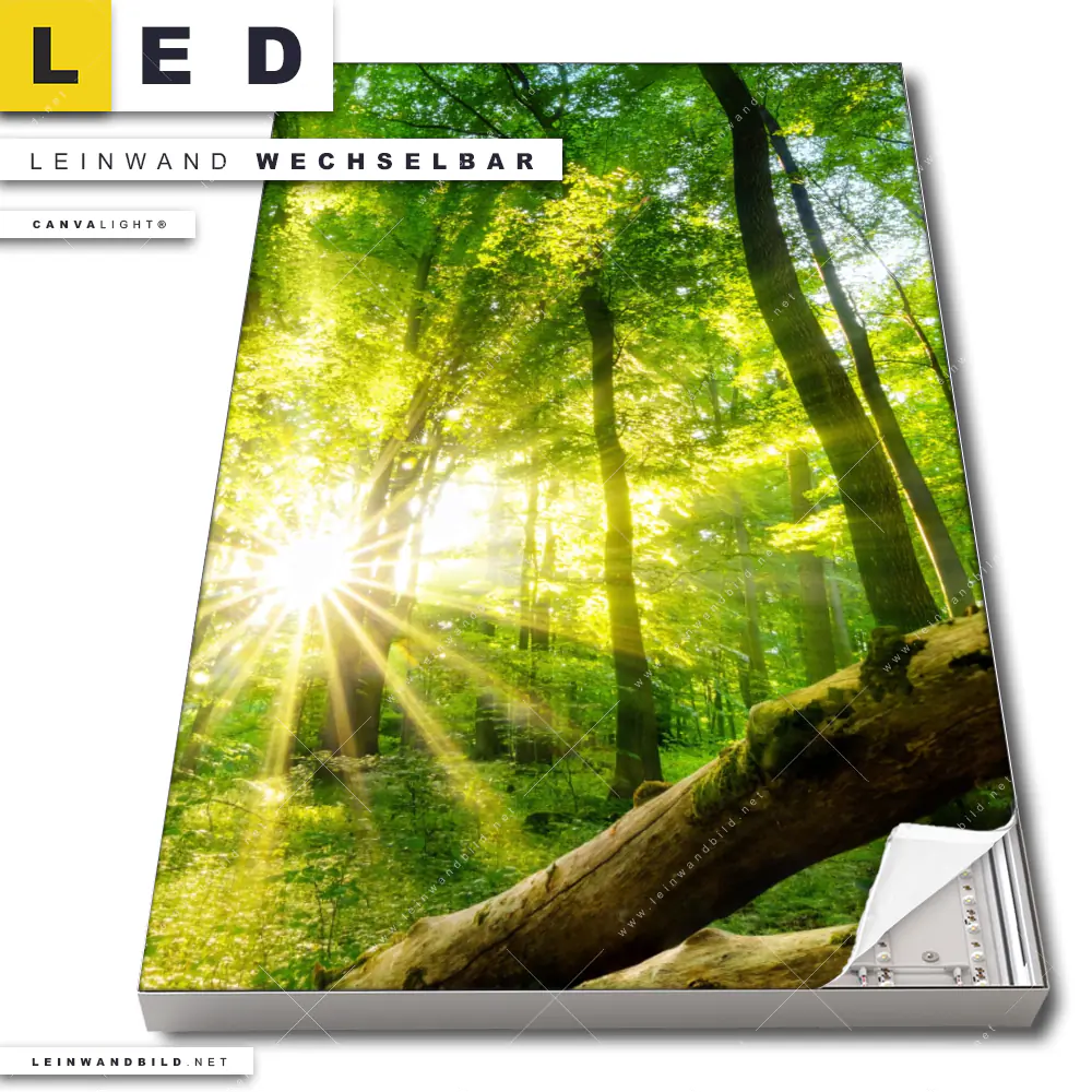 Du bist auf der Suche nach einem Landschaften, Wald - Bäume LED Leinwandbild im Hochformat? Begriffe wie Wald, Landschaft, Baum, Bäume, Natur, Sonne, Sonnenstrahlen, Licht, Sonnenlicht, Baumkrone, Baumstamm haben Dich auf der Suche nach Deinem neuen XXL LED Wandbild mit wechselbarer Leinwand inspiriert? Farben wie Grün, Braun, Hellgrün dürfen auf Deinem neuen Leinwand-LED-Bild nicht fehlen und Leuchtbilder im Natürlich - Realistisch Stil passen perfekt zu Deinem Einrichtungsstil?