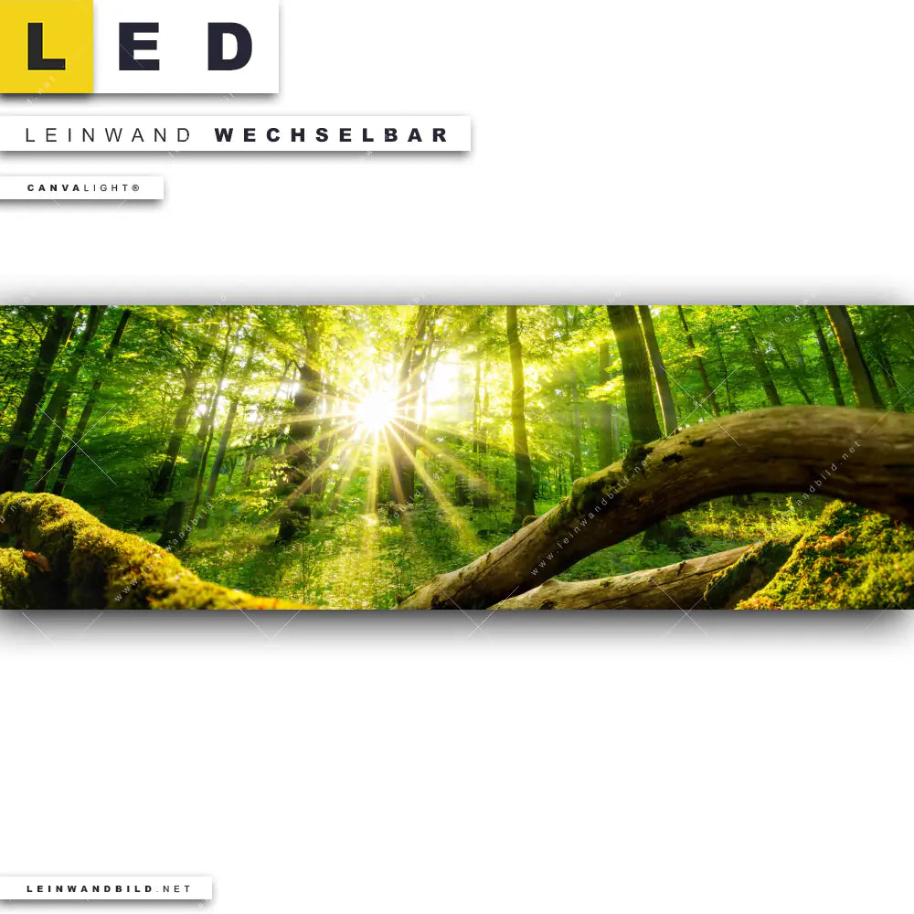 Du bist auf der Suche nach einem Landschaften, Wald - Bäume LED Leinwandbild im Panorama-Format? Begriffe wie Wald, Landschaft, Baum, Bäume, Natur, Sonne, Sonnenstrahlen, Licht, Sonnenlicht, Baumkrone, Baumstamm haben Dich auf der Suche nach Deinem neuen XXL LED Wandbild mit wechselbarer Leinwand inspiriert? Farben wie Grün, Braun, Hellgrün dürfen auf Deinem neuen extra breiten Leinwand-LED-Bild nicht fehlen und Leuchtbilder im Natürlich - Realistisch Stil passen perfekt zu Deinem Einrichtungsstil?