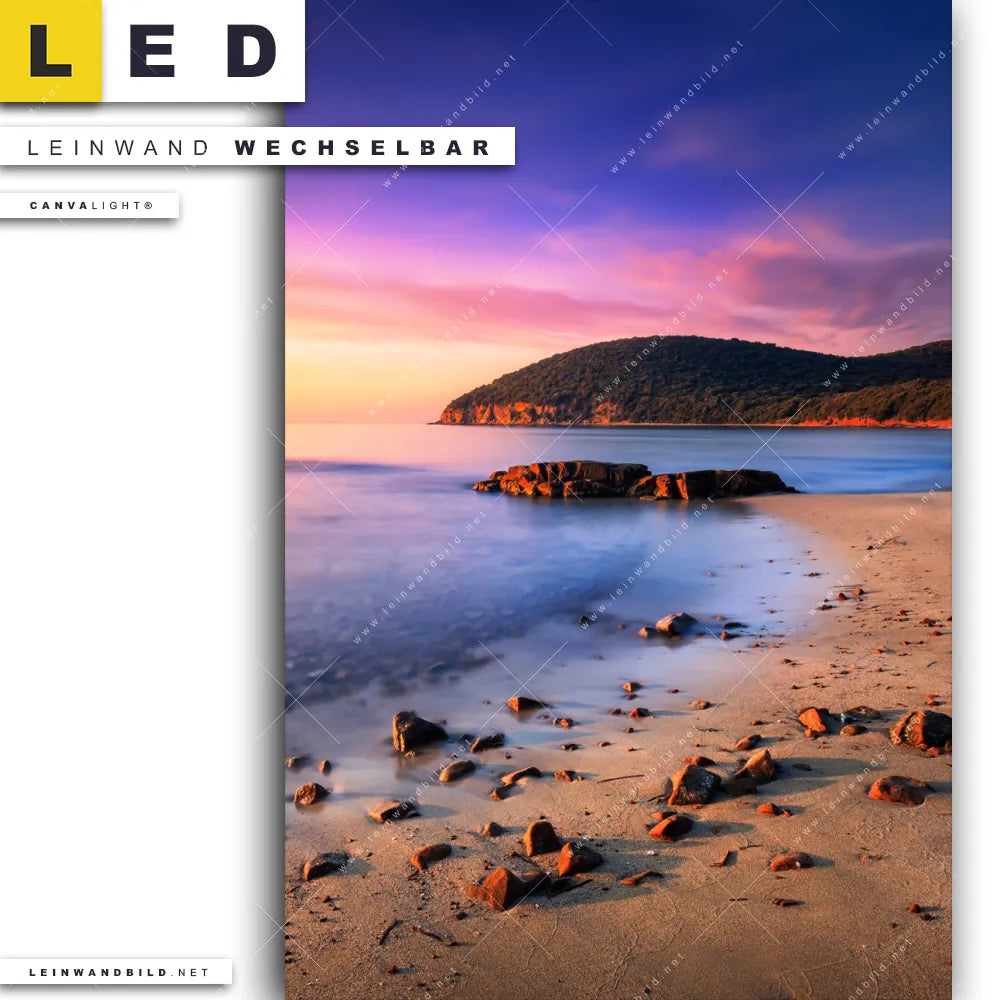 LED Leinwandbild Canvalight® TEX | Sonnenuntergang in Bucht | Hochformat