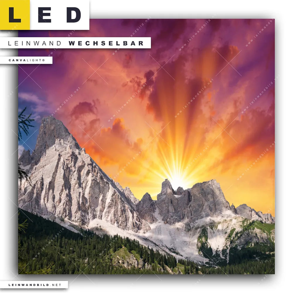 LED Leinwandbild Canvalight® TEX | Sonnenuntergang in den Bergen | Quadrat