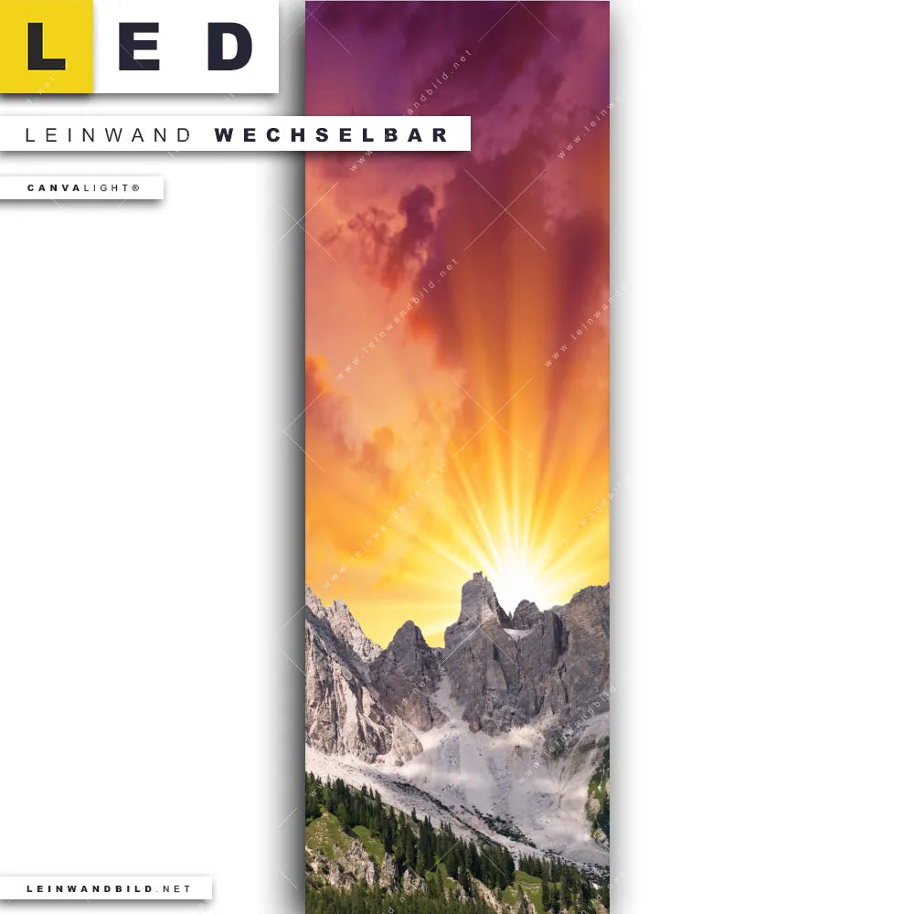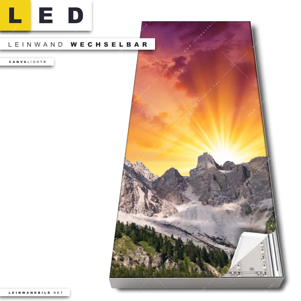 LED Leinwandbild Canvalight® TEX | Sonnenuntergang in den Bergen | Schmal